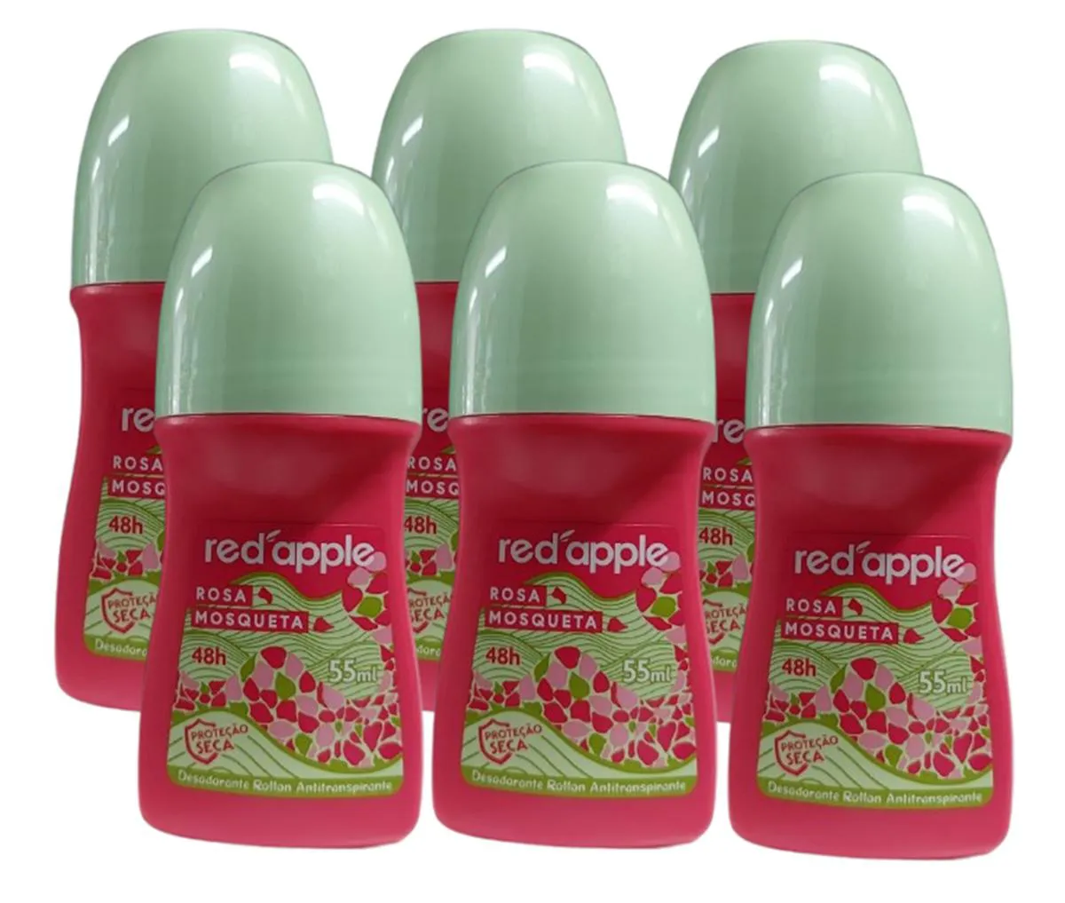 Kit 6 Desodorante Red Apple Roll On Rosa Mosqueta 55Ml