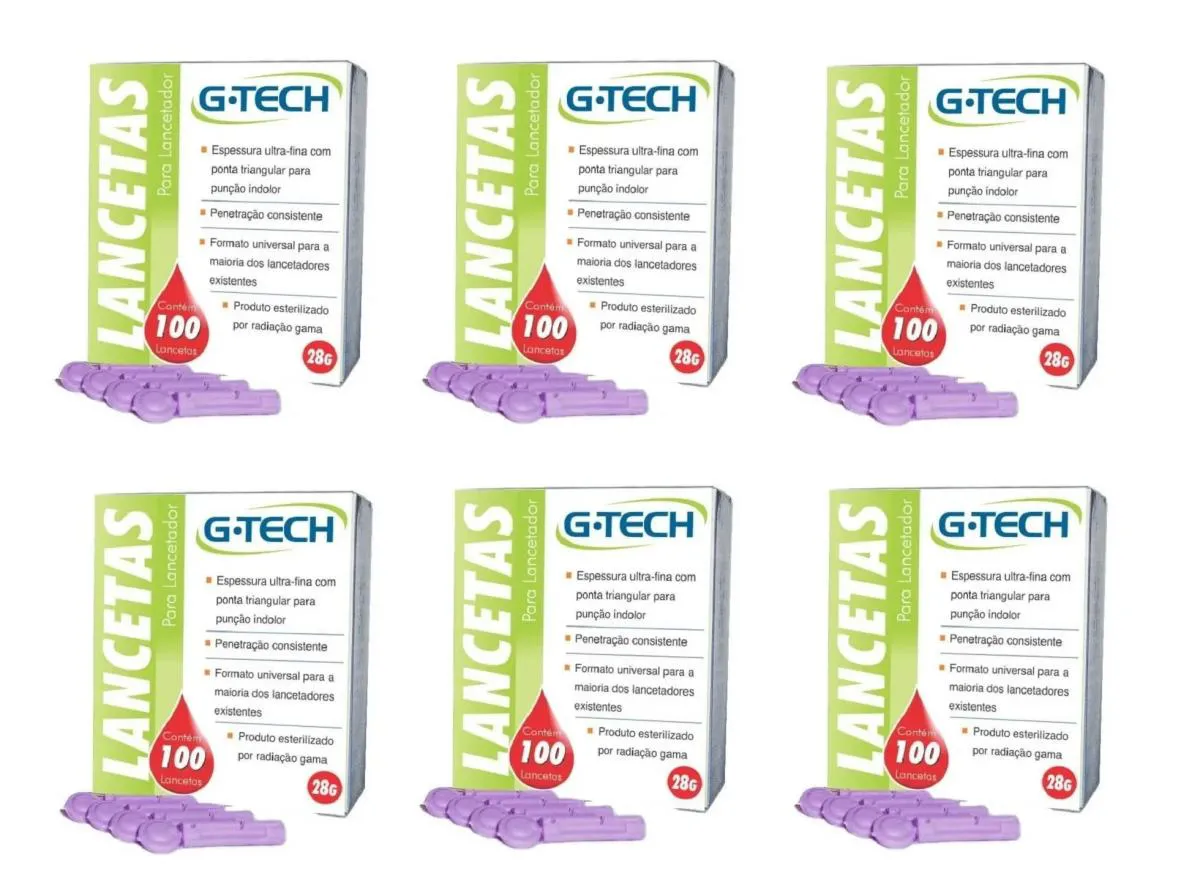 Kit 6 Lanceta para Lancetador Fina G-tech Glicemia 28g 100Un