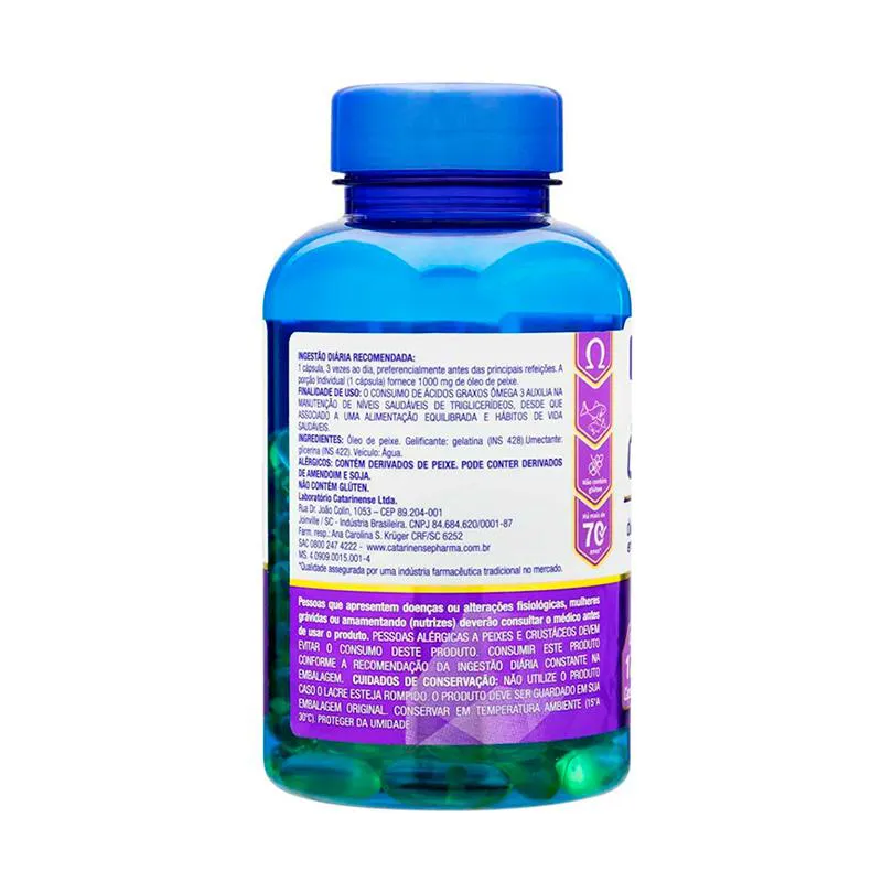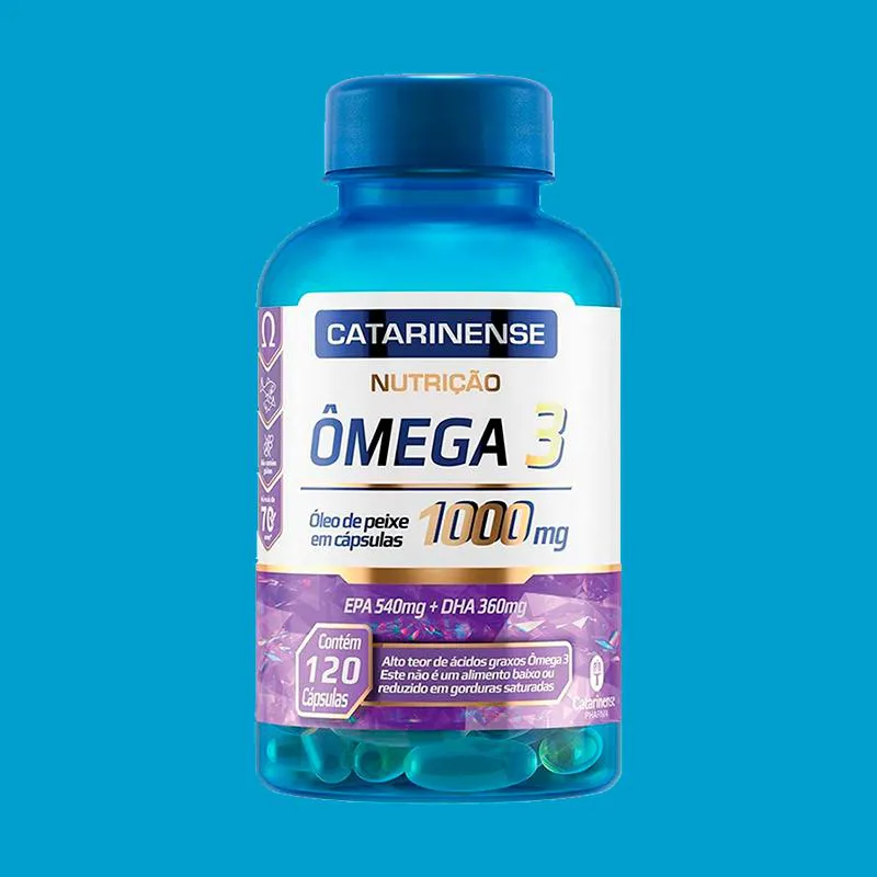 Ômega 3 EPA 540mg DHA 360mg Catarinense 120 Cápsulas O Ômega 3 1000mg do Laboratório Catarinense é um suplemento alimentar rico em ácidos graxos essenciais EPA e DHA, reconhecidos por seus benefícios à saúde cardiovascular e cerebral. Ideal para quem deseja manter níveis saudáveis de triglicerídeos e apoiar o bom funcionamento do sistema nervoso.