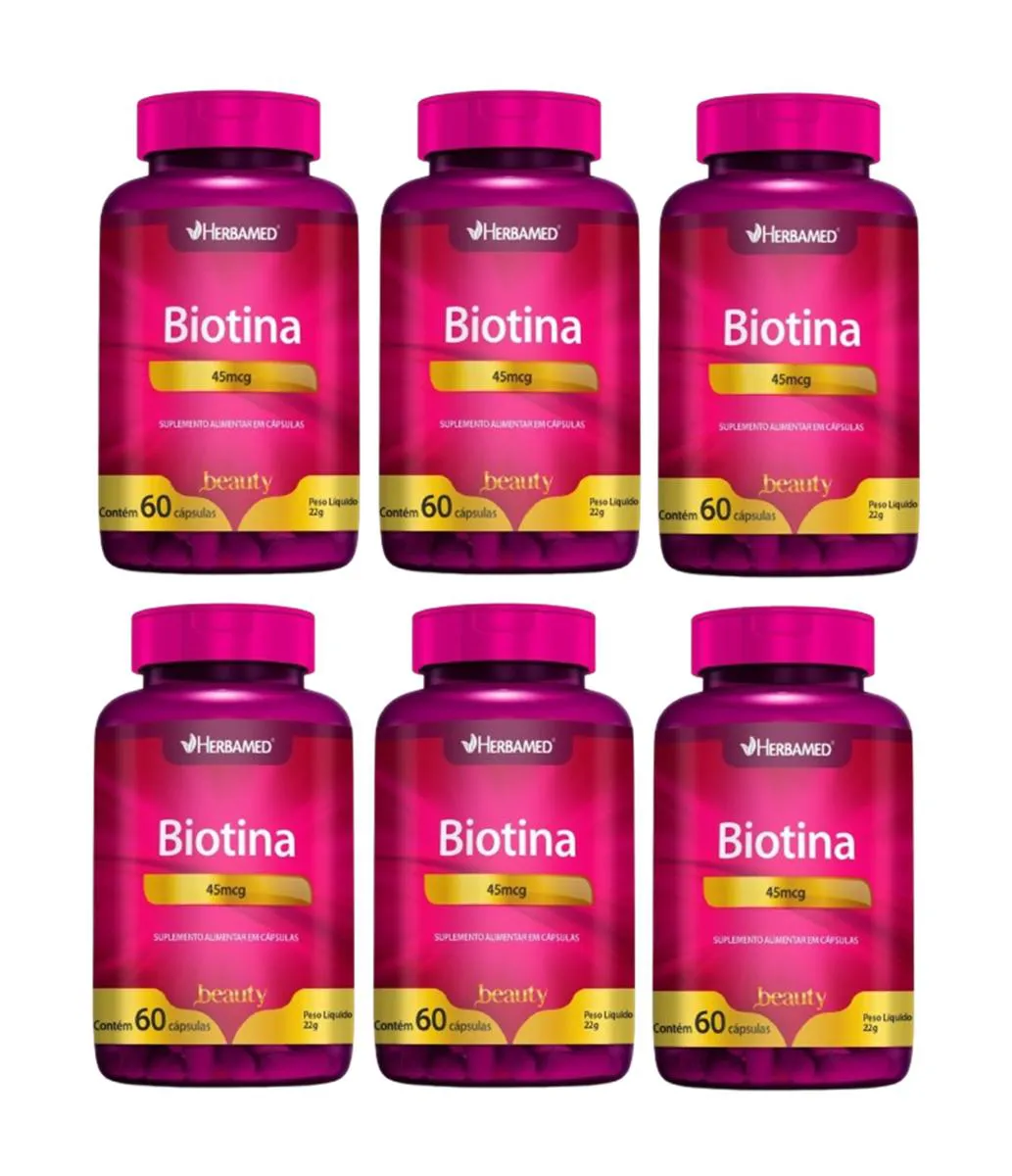 Kit 6 Suplemento Alimentar Biotina 45mcg C/60 Cáps -Herbamed