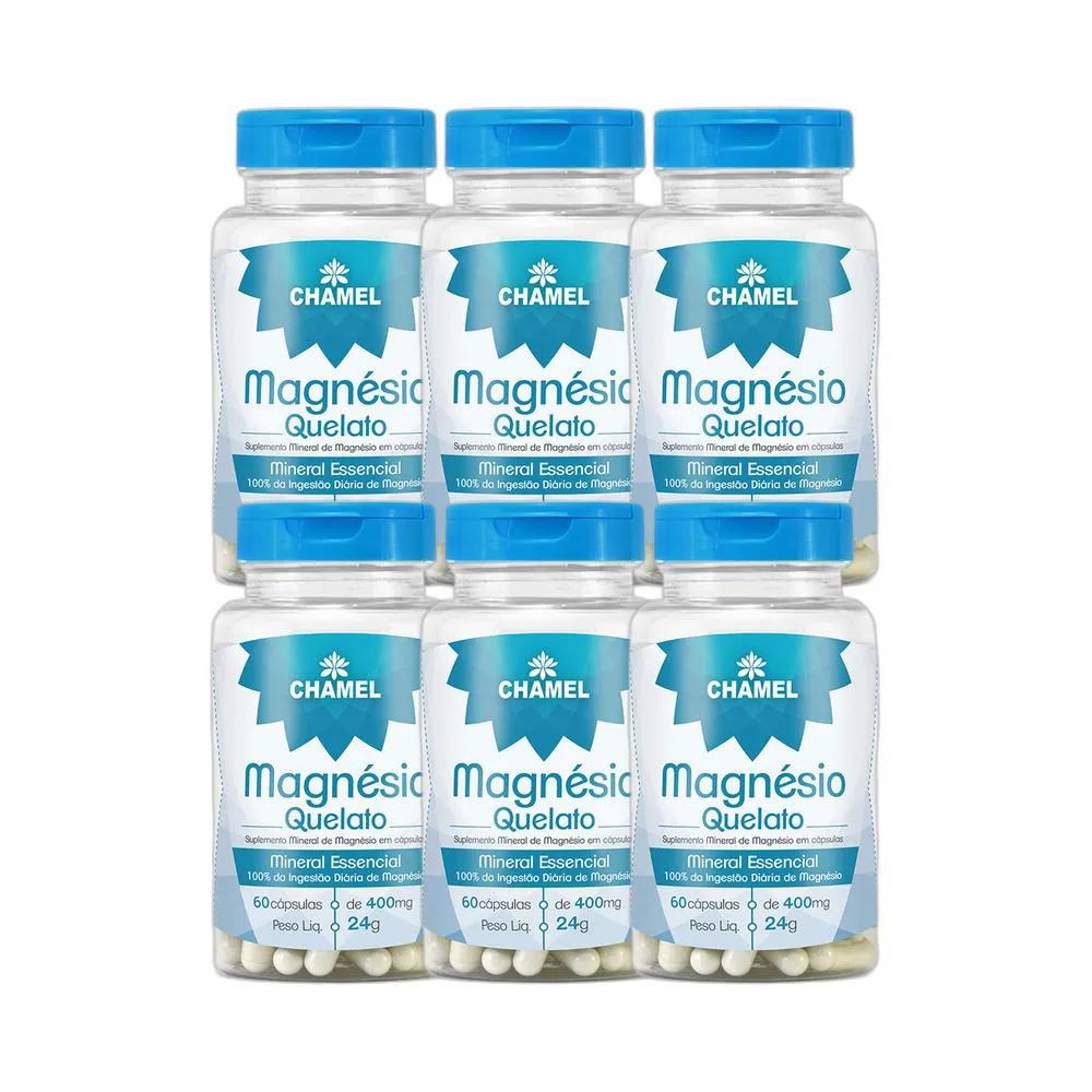 Kit 6x Vitamina Magnésio Quelato 360mg 60 Cápsulas - CHAMEL