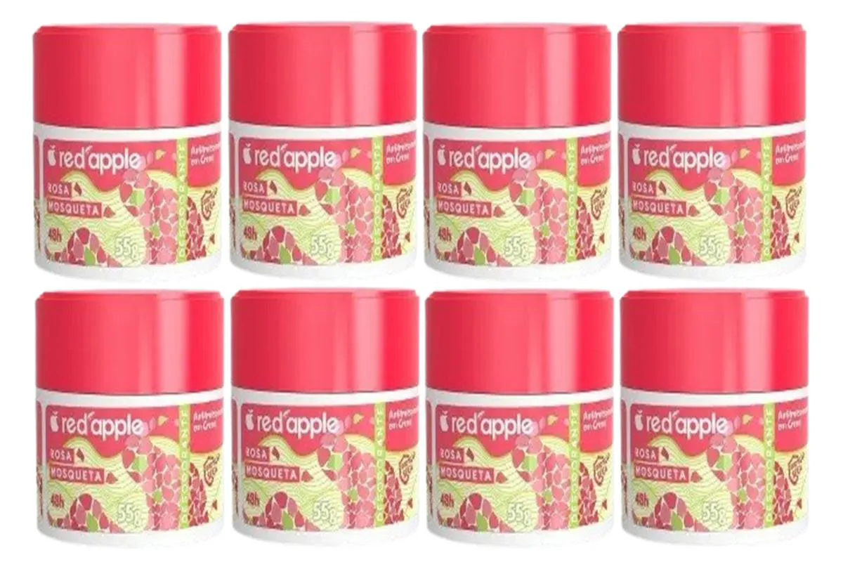 Kit 8 Desodorante Red Apple Em Creme Rosa Mosqueta 55g