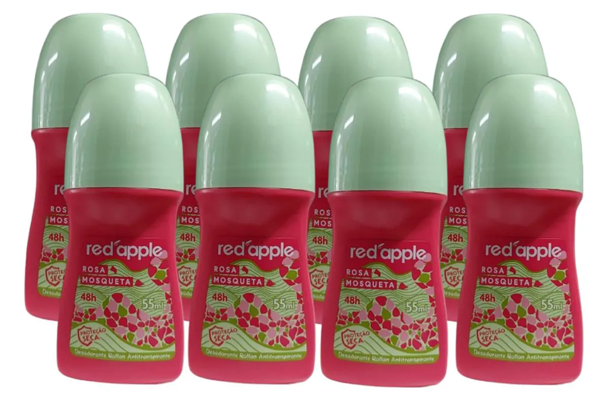 Kit 8 Desodorante Red Apple Roll On Rosa Mosqueta 55Ml