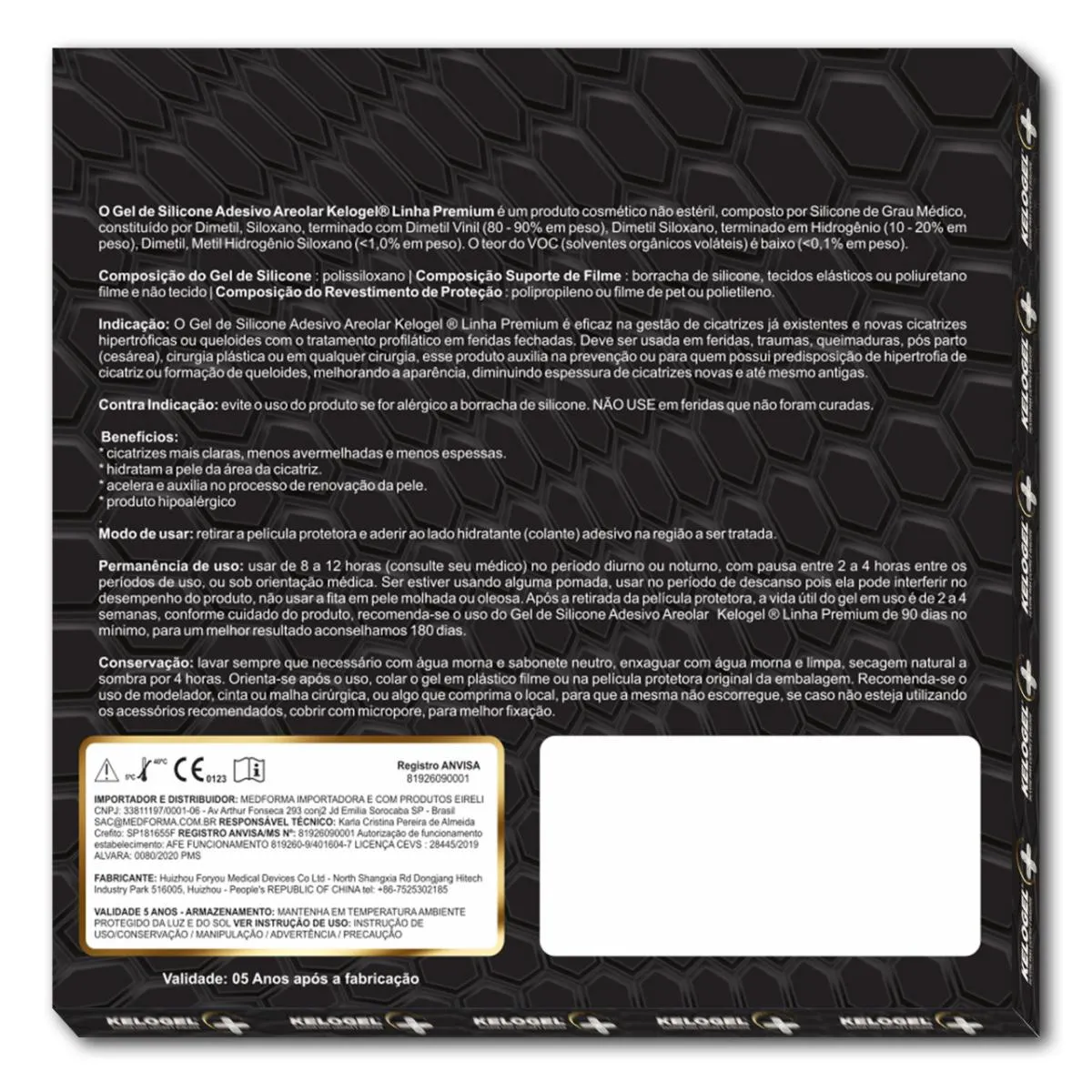 Indicação: O Gel de Silicone Adesivo Kelogel ® é indicado para o gerenciamento de cicatrizes, cicatrizes hipertróficas ou queloides em feridas fechadas. Ideal para uso em feridas, traumas, queimaduras, pós-parto (cesárea), cirurgia plástica ou qualquer intervenção cirúrgica. Auxilia na prevenção e tratamento de predisposição à hipertrofia cicatricial, melhorando a aparência e reduzindo a espessura de cicatrizes novas e antigas. Contraindicação: Evite o uso se for alérgico ao silicone. Não aplicar em feridas não cicatrizadas. Benefícios: Reduz cicatrizes, tornando-as mais claras, menos avermelhadas e menos espessas. Modo de usar: Lave e higienize as mãos antes de manusear o produto. Limpe e seque a pele, evitando produtos oleosos. Remova a película protetora e aplique o lado adesivo na área tratada. Use por 8 a 12 horas diurnas ou noturnas, com pausas de 2 a 4 horas entre os usos. Evite o uso com pomadas simultâneas. Após uso, o gel pode durar de 2 a 4 semanas. Recomenda-se o uso mínimo de 90 dias, idealmente 180 dias, para melhores resultados. Conservação: Lave quando necessário com água morna e sabonete neutro, enxágue com água limpa e seque à sombra por 4 horas. Use modelador, cinta ou malha cirúrgica para fixação, cobrindo com micropore para melhor aderência. REGISTRO ANVISA/ MS nº 81926090001