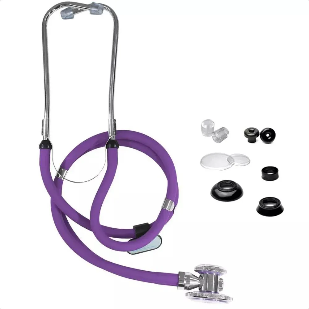 - Estetoscópio com tubo duplo para ausculta precisa.