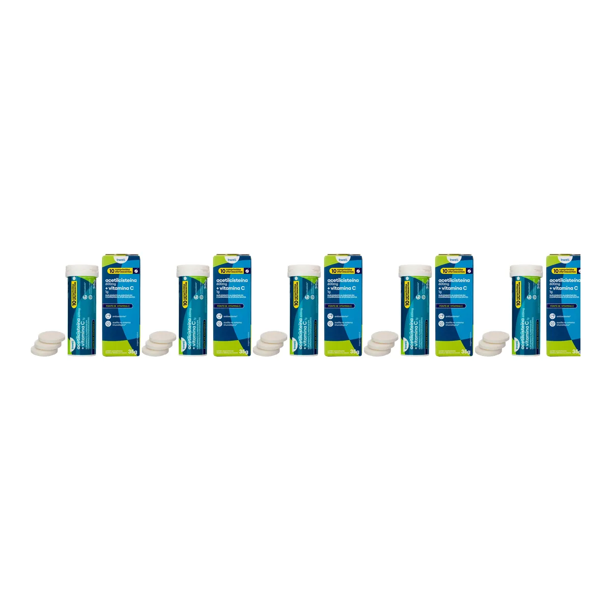 Kit Acetilcisteína 600mg + Vitamina C bwell 1g 10 Comprimidos 5 unidades