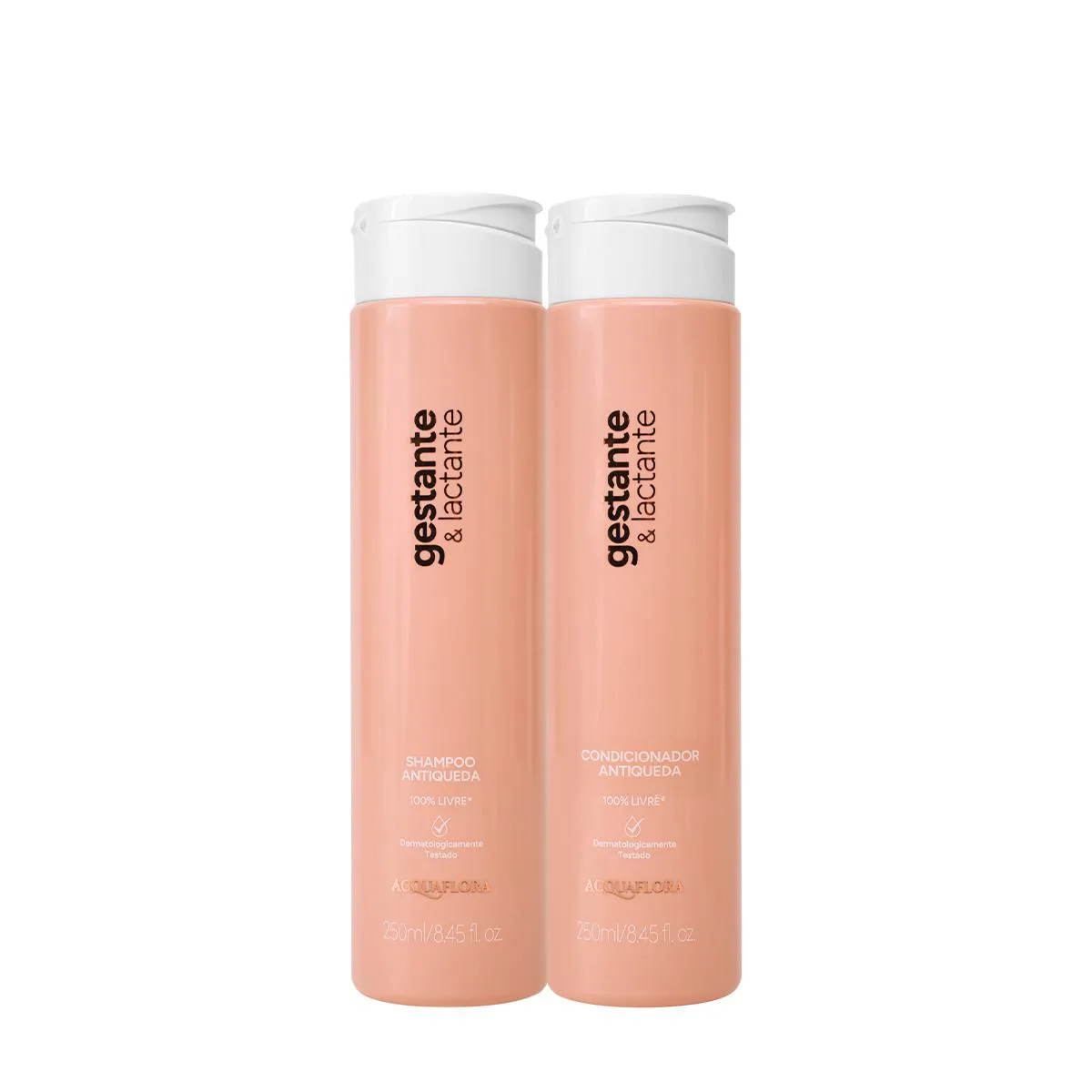 Este Kit Contém Acquaflora Gestante e Lactante - shampoo antiqueda 250ml: limpeza suave que fortalece os fios e auxilia na redução da queda durante a gestação e amamentação. Fórmula que estimula o crescimento saudável. Acquaflora Gestante e Lactante - condicionador Antiqueda 250ml: desembaraça, fortalece e ajuda a reduzir a queda enquanto nutre profundamente. Com microalgas do tahiti, alecrim e aminoácidos, deixa os fios macios e protegidos.Conselho de Aplicação