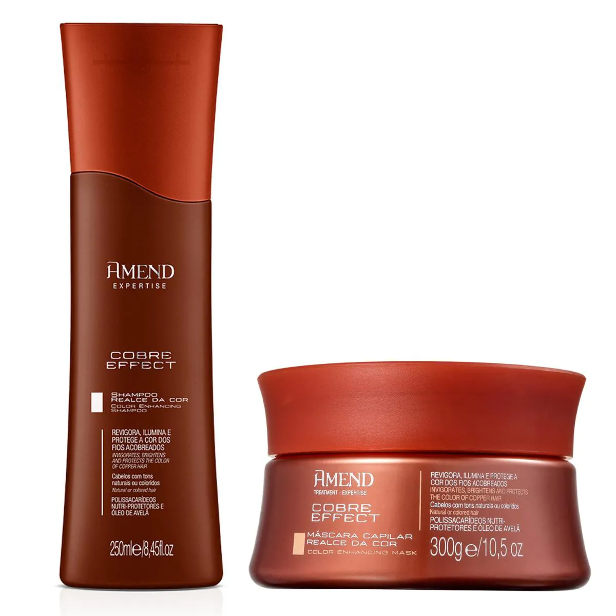 Kit composto de 2 produtos: Shampoo Amend Expertise Realce da Cor Cobre Effect 250ml e Máscara Amend Expertise Realce da Cor Cobre Effect 300g