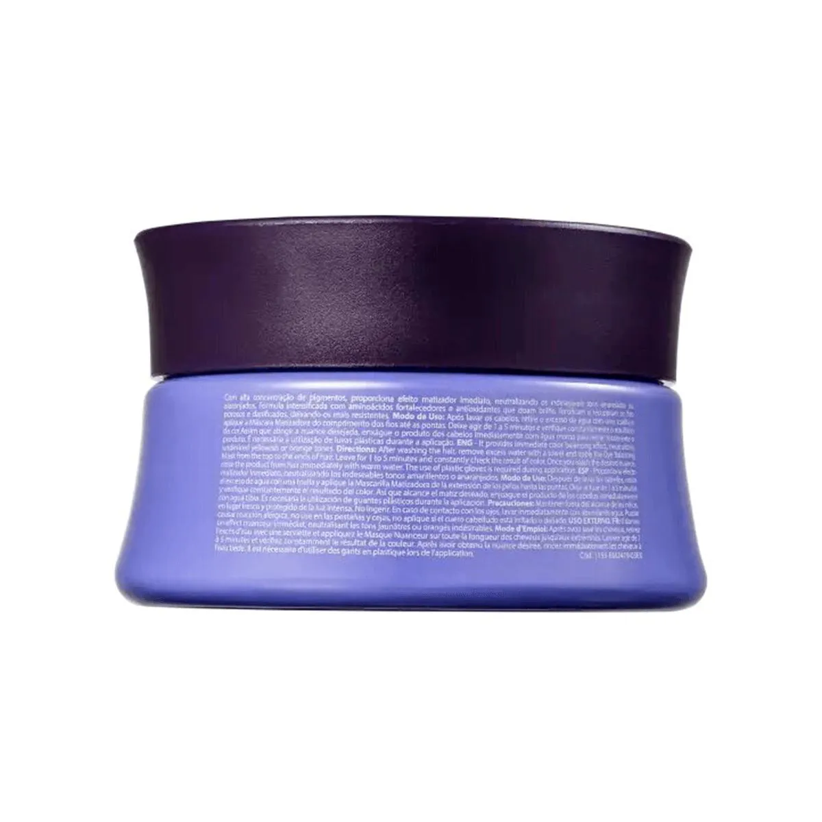 - Máscara Matizadora: Após lavar os cabelos, retirar o excesso de água e aplicar a máscara do comprimento às pontas. Deixar agir de 1 a 5 minutos, verificando constantemente o resultado da cor. Enxaguar completamente.