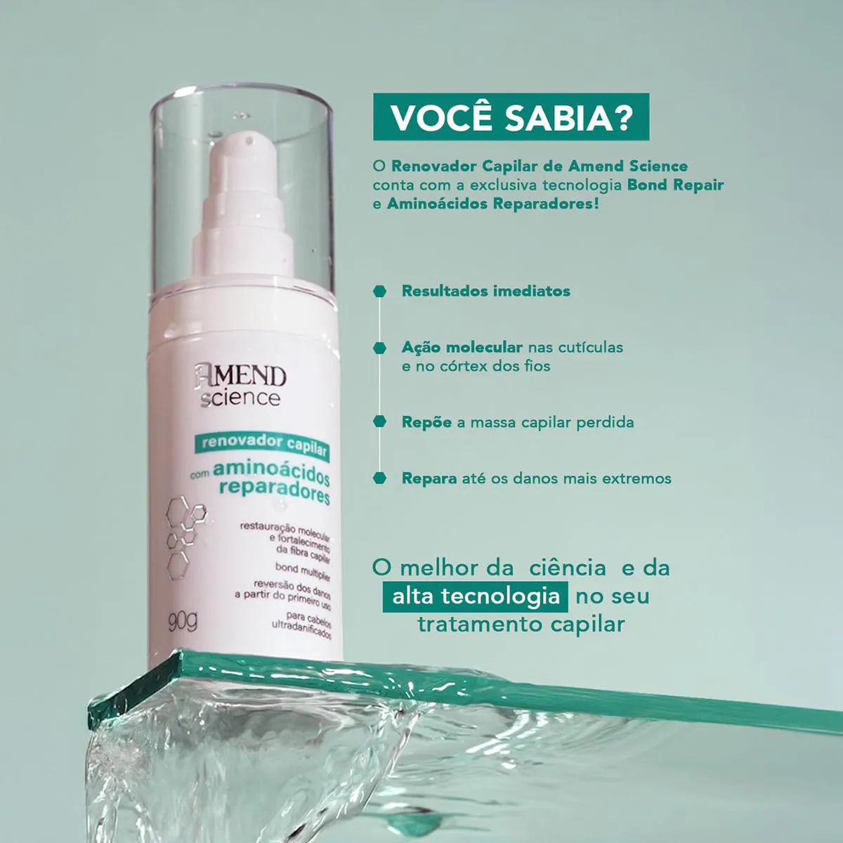 Este Kit Contém Amend Millenar Óleos Árabes - shampoo 300ml: limpeza suave, com um toque de luxo oriental. Com mass replenish complex, óleo de damasco e pistache, fortalece os fios, previne quebra e pontas duplas. Cabelos limpos, fortes e com brilho saudável. Amend Millenar Óleos Árabes - condicionador 300ml: nutrição profunda que repara e protege. Combate o frizz, deixando os fios macios e luminosos. Fórmula rica em ativos restauradores, que blindam contra agressões externas e garantem hidratação intensa. Amend Millenar Óleos Árabes - Máscara Capilar 300g: tratamento intensivo de nutrição e brilho. Hidrata profundamente, reduz o frizz, restaura a maciez e devolve o toque aveludado aos fios. Transforma cabelos opacos em madeixas sedosas e iluminadas. Amend Millenar Óleos Árabes Balm Selante - Leave-in 180g: sela as cutículas, protege contra o calor, frizz e poluição. Nutrição instantânea, brilho espelhado e disciplina sem pesar. Amend Science com Aminoácidos Reparadores - tratamento capilar 90g: repara danos severos, repõe massa capilar e fortalece os fios de dentro para fora. Cabelos mais resistentes, brilhantes e saudáveis desde a primeira aplicação.Conselho de Aplicação