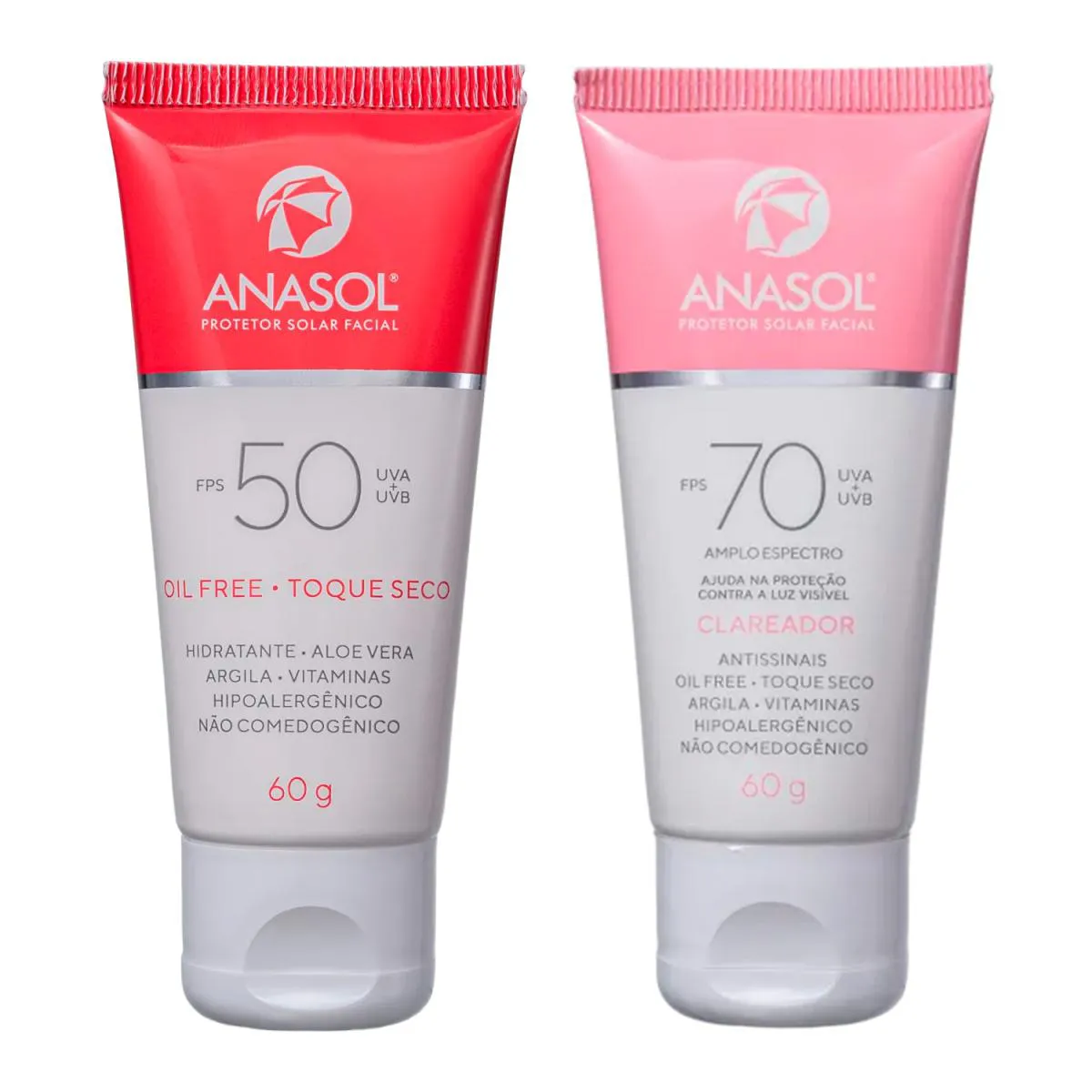 Anasol Kit Protetor Solar Facial FPS 70 e FPS 50 - ( Clareador Vegano, Oil Free )