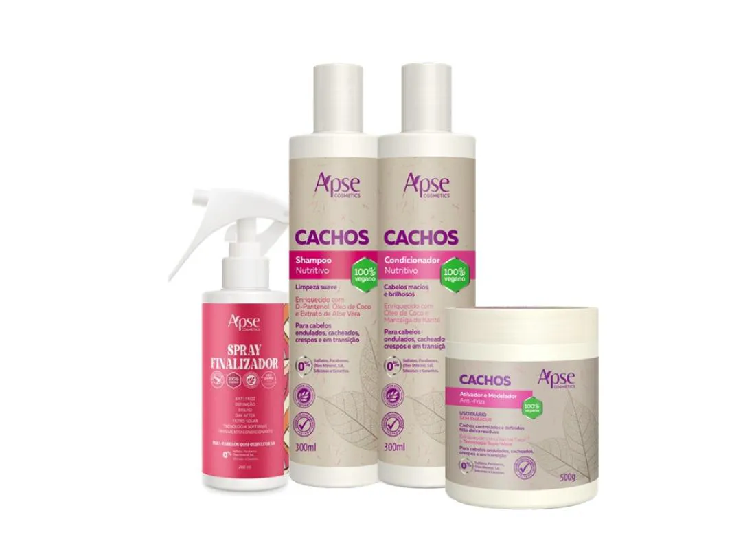 Kit Apice Cachos Ativador Finalizador Shampoo Condicionador