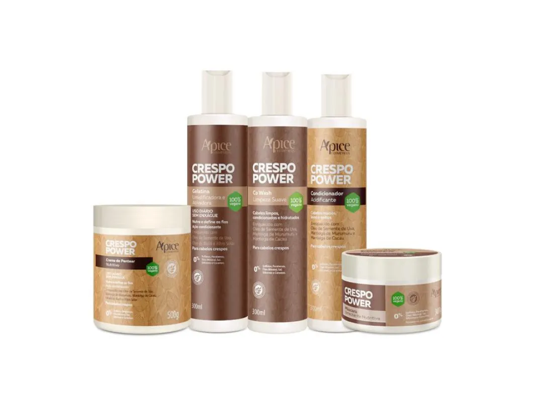 KIT Crespo Power contém: Co Wash 300 ml, condicionador Ação Condicionate 300 ml, Gelatina Ativadora 300 ml, Máscara 300g e Creme de Pentear 500g Ação Condicionante. O kit ideal para os cuidados dos cabelos crespos Com Ação Condicionante. Enriquecido com: ÓLEO DE SEMENTE DE UVA: Ativo altamente hidratante. Atua na prevenção da queda, evita que os fios se tornem quebradiços, fortalece os fios, além de auxiliar no crescimento capilar. MANTEIGA DE MURUMURU: Indicada para reconstrução dos fios danificados, preenche as fissuras e alinha as cutículas, devolvendo a sua elasticidade natural. MANTEIGA DE CACAU: possui propriedades hidratantes e emolientes. Tem a capacidade de regenerar a fibra capilar, deixando-a macia e mais maleável. EXTRATO DE BURITI: Protege a queratina e o colágeno presentes no fio de cabelo, auxiliando o seu fortalecimento e evitando, consequentemente, a quebra, o frizz e as pontas duplas. Filtro solar natural. Desenvolvido para cabelos crespos! Liberado para uso em crianças acima de 3 anos
