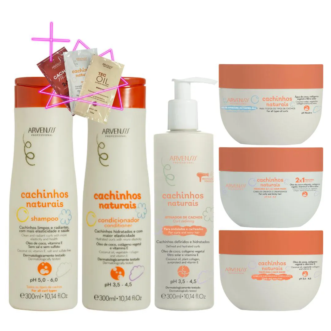 O Kit Arvensis Cachinhos Naturais Ondulados e cacheados oferece uma rotina completa de tratamento para cachinhos infantis, cuidando desde a limpeza até a finalização. Com ativos poderosos como Óleo de Coco, colágeno Vegetal e Abacate, cada produto atua para hidratar, nutrir e definir os fios, mantendo o frizz sob controle e proporcionando um brilho natural incrível. A linha foi desenvolvida com fórmulas suaves e equilibradas, pensadas especialmente para cabelos infantis a partir dos 3 anos, garantindo resultados visíveis sem agredir os fios delicados.