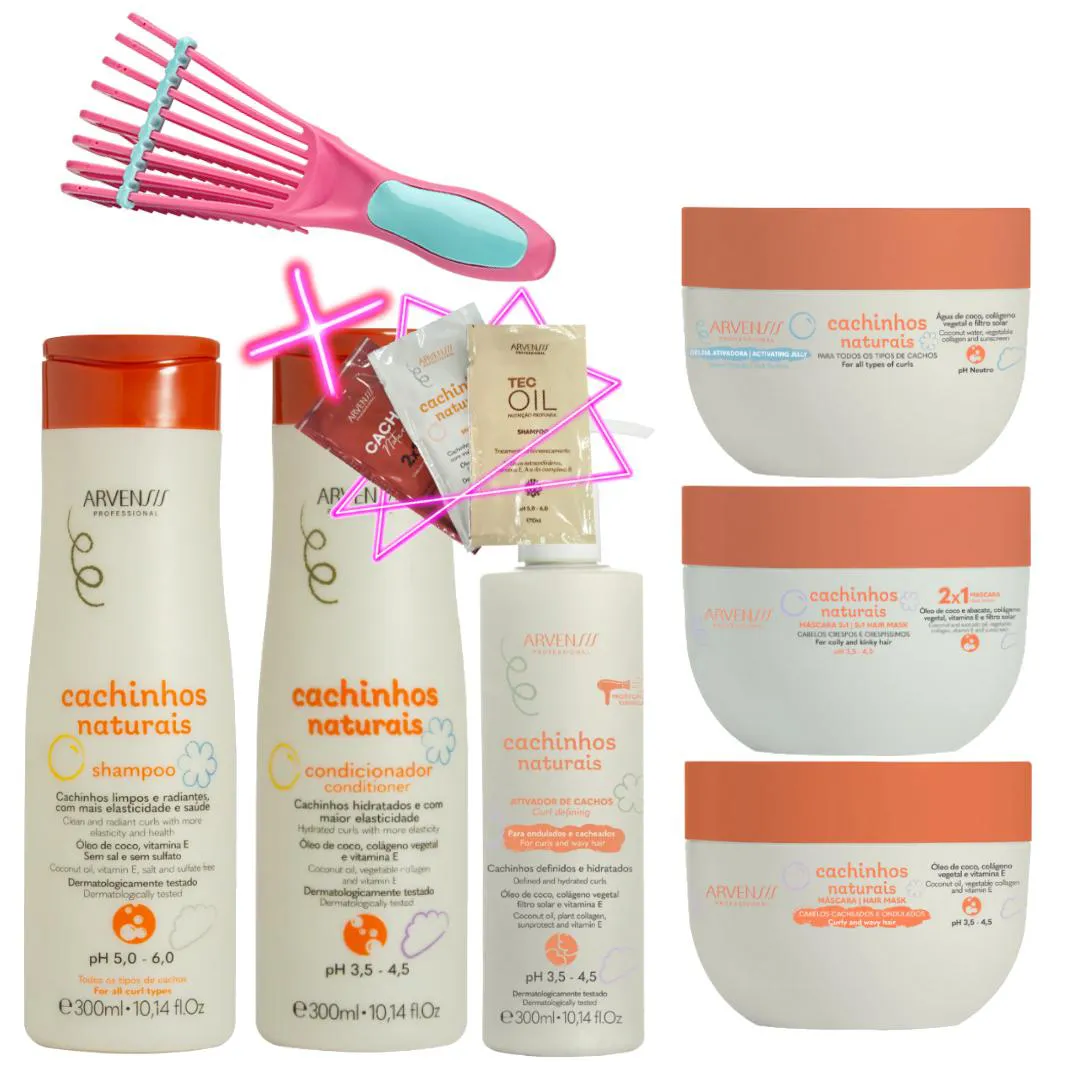 - Garantia de 30 dias KIT ARVENSIS CACHINHOS NATURAIS - Tudo o que você precisa em um único pacote para cachos definidos, hidratados e cheios de vida! Kit Arvensis Cachinhos Naturais - Sistema Completo 7 em 1 Shampoo abre cutículas → Máscara nutre profundamente → Condicionador sela → Finalizador define. Tecnologia profissional para cachos infantis 2A-3A. Fórmulas seguras e resultados comprovados.