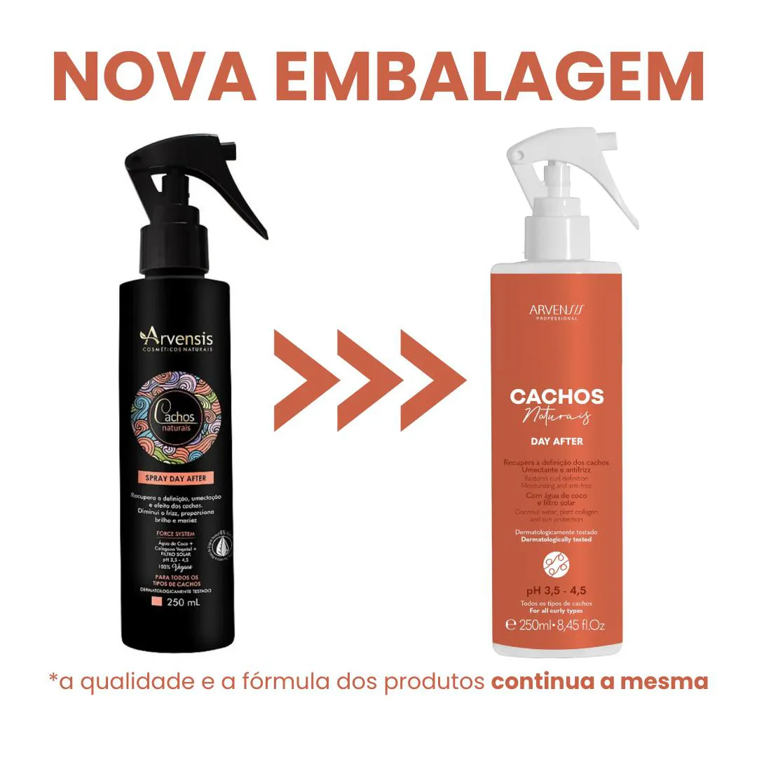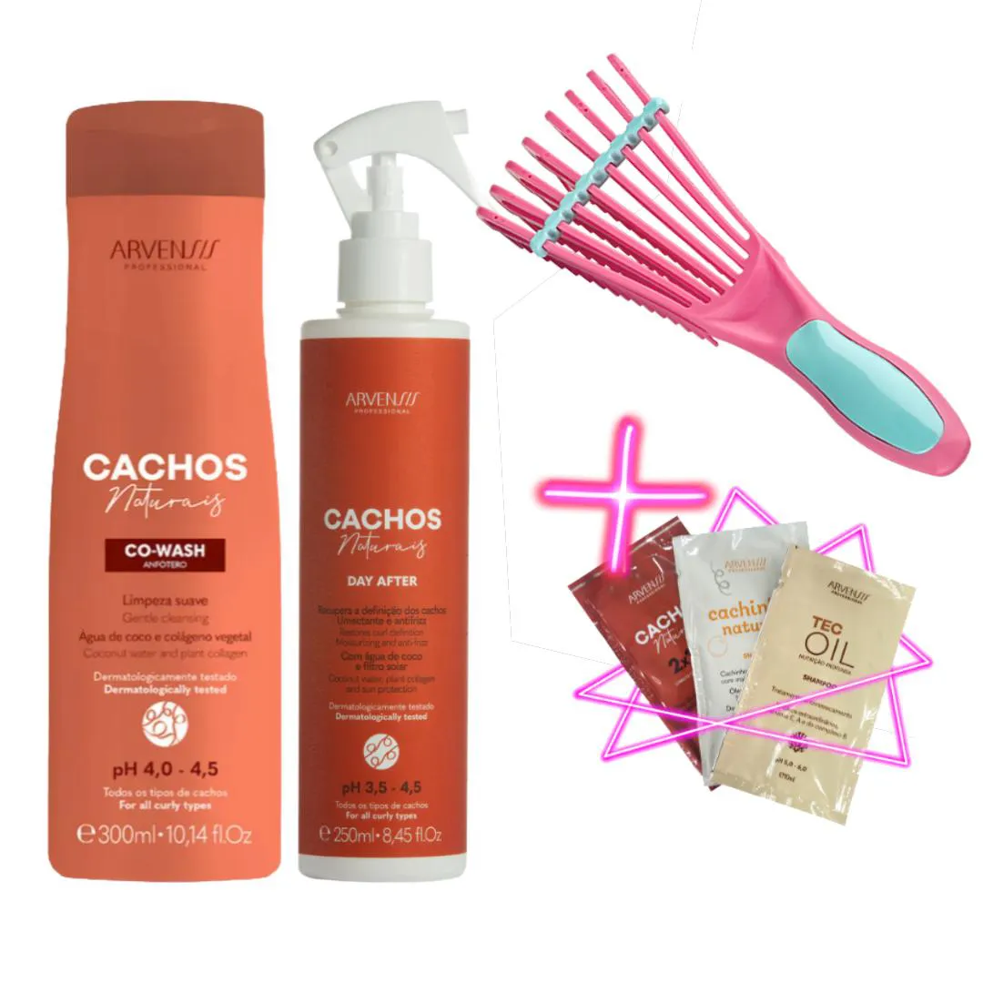 Indicado para todos os tipos de cachos (2A a 4C) GARANTA SEU KIT HOJE! Kit Arvensis Cachos Naturais – Tudo o que você precisa para cachos perfeitos, hidratados e cheios de vida, do banho ao dia seguinte! Kit Arvensis Cachos Naturais - Co-Wash + Spray Day After + Escova Limpeza suave, nutrição profunda e redefinição instantânea para cachos 2A a 4C. Fórmulas enriquecidas com Óleo de Coco, Colágeno Vegetal e proteção UV.