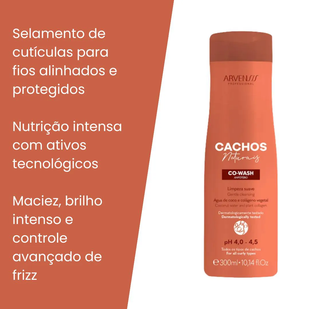 KIT ARVENSIS CACHOS NATURAIS - O TRATAMENTO COMPLETO DO banho AO DIA SEGUINTE! O segredo para cachos perfeitos em qualquer momento! Transforme sua rotina capilar com o Kit Arvensis Cachos Naturais, desenvolvido especialmente para todos os tipos de cachos - das ondas 2A aos cachos 4C. Este conjunto revolucionário oferece limpeza inteligente, nutrição profunda e definição prolongada, garantindo cachos impecáveis do banho ao dia seguinte. O KIT INCLUI: Co-Wash Arvensis 300ml