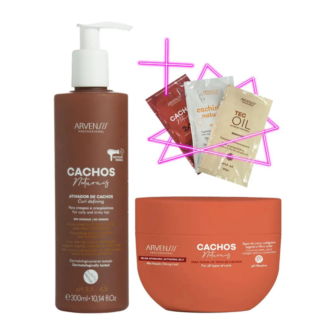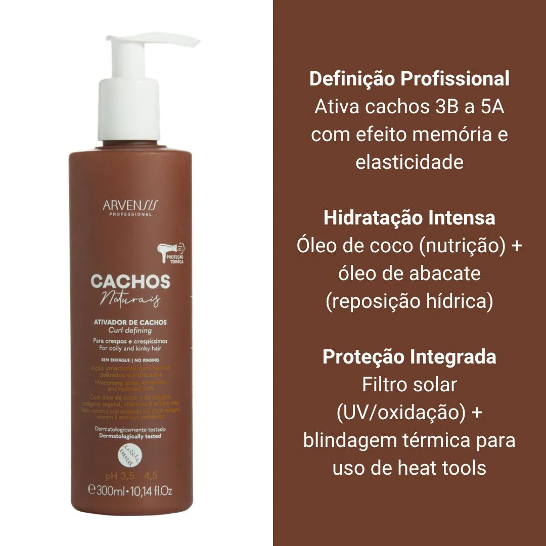 Economia ao adquirir o kit completo Kit Arvensis Definição Profissional para Cachos Solução completa para definição e fixação de cachos 2A a 5A, com proteção solar, hidratação profunda e fortalecimento capilar. Transforme seus cuidados capilares com resultados profissionais em casa.