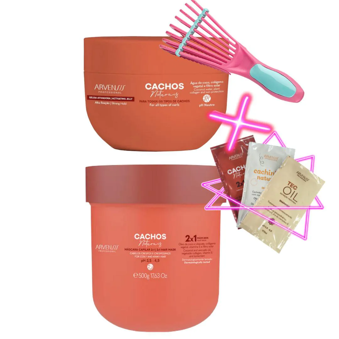 Kit Arvensis Cachos Máscara 2X1 Geleia Alta + Escova Caracol
