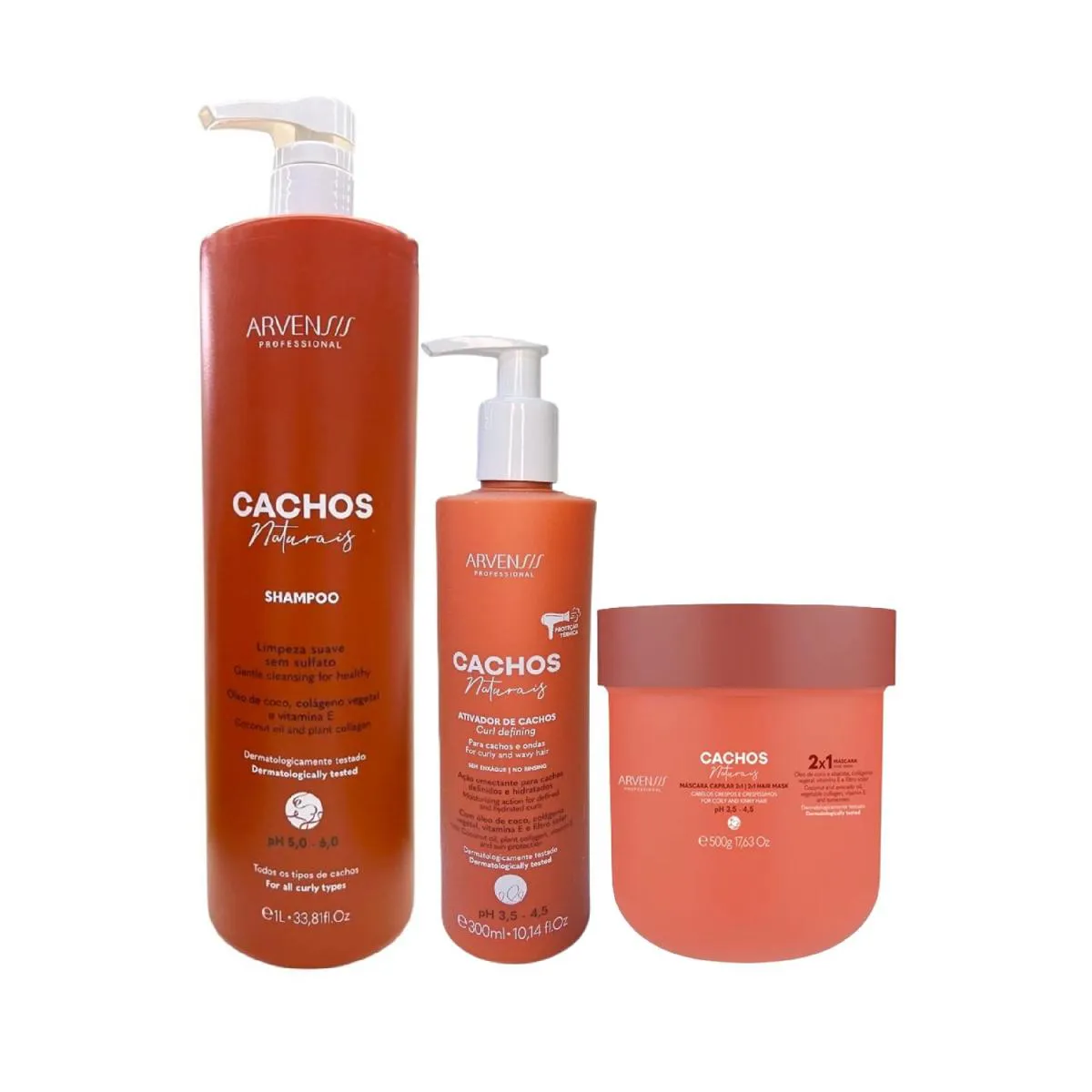 KIT ARVENSIS CACHOS NATURAIS - SHAMPOO 1L + ATIVADOR DE CACHOS 300ML + MáSCARA CAPILAR 2X1 500G