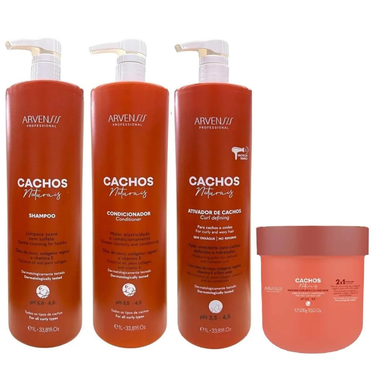 KIT ARVENSIS CACHOS NATURAIS - SHAMPOO 1L + CONDICIONADOR 1L + ATIVADOR DE CACHOS 1L + MáSCARA CAPILAR 2X1 500G