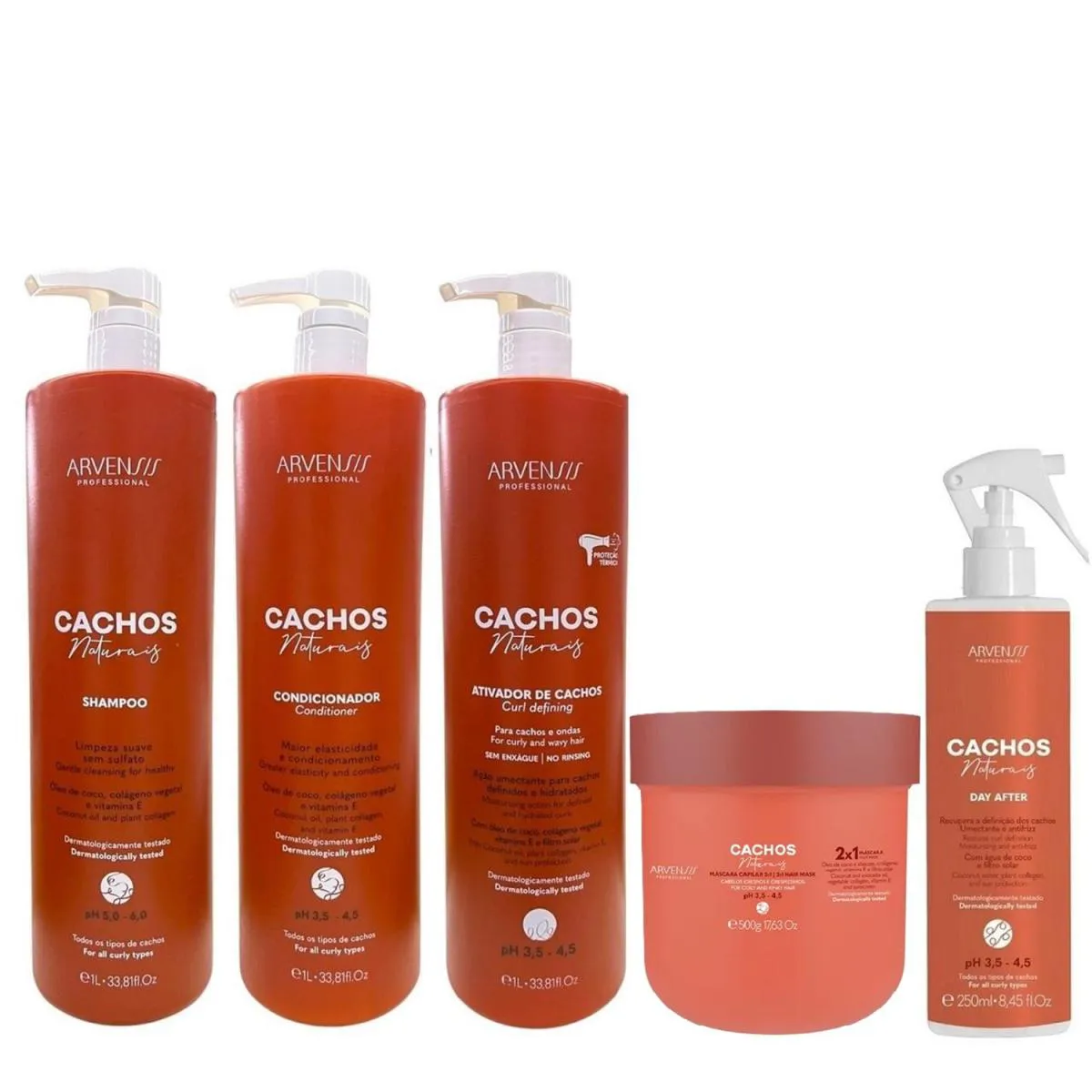 KIT ARVENSIS CACHOS - SHAMPOO 1L + CONDICIONADOR 1L + ATIVADOR DE CACHOS 1L + DAY AFTER 250ML +MáSCARA CAPILAR 2X1 500G