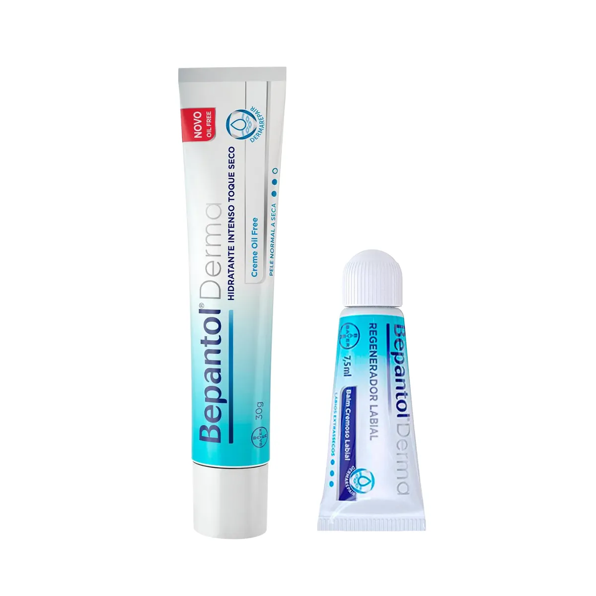 - Kit Bepantol Derma Oil Free e Regenerador Labial para hidratação completa da pele e dos lábios.