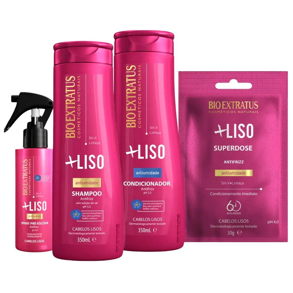 KIT BIO EXTRATUS MAIS LISO SHAMPOO CONDICIONADOR SPRAY SUPERDOSE