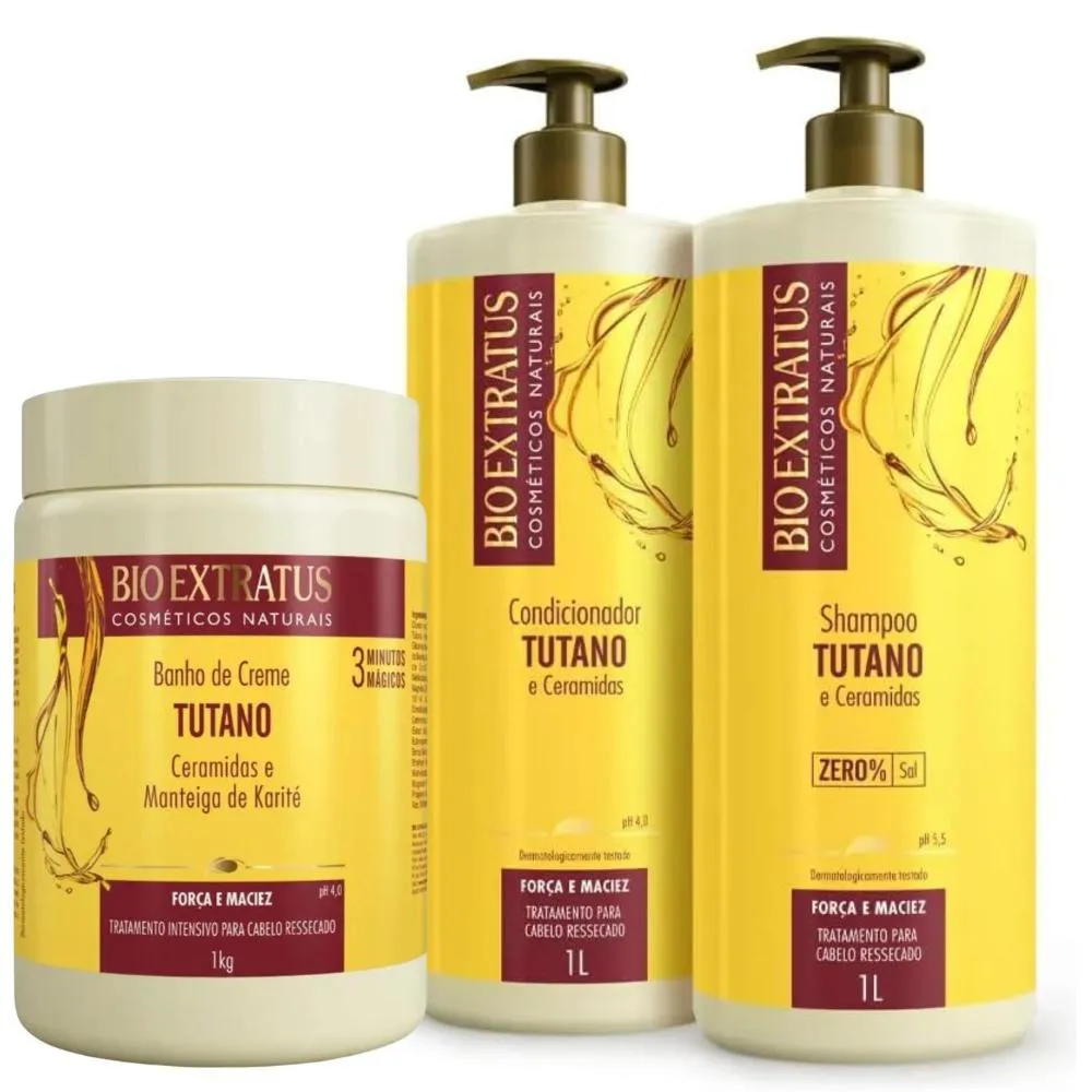 O Kit Bio Extratus Tutano com shampoo, condicionador e máscara de 1kg foi desenvolvido para oferecer tratamento nutritivo intenso, fortalecimento e recuperação profunda da fibra capilar, sendo ideal para cabelos secos, ressecados, danificados ou quimicamente tratados. Indicado para uso profissional em salões ou para quem busca alto rendimento e tratamento contínuo em casa.O shampoo realiza a limpeza eficiente do couro cabeludo e dos fios sem ressecar, auxiliando na remoção de impurezas enquanto preserva a hidratação natural. Sua ação prepara o cabelo para receber os próximos passos do tratamento, deixando os fios mais alinhados e resistentes desde a lavagem.O condicionador atua no comprimento e nas pontas, promovendo reposição lipídica, melhora da maleabilidade e redução do aspecto áspero. Sua fórmula enriquecida com tutano vegetal, queratina e ceramidas contribui para a reconstrução da fibra capilar, proporcionando fios mais disciplinados, encorpados e com brilho visível.A máscara de tratamento potencializa os resultados ao agir profundamente na estrutura do cabelo, auxiliando na recuperação de danos, na nutrição intensa e no fortalecimento dos fios. Com textura cremosa e alto poder de tratamento, ajuda a restaurar a maciez, a elasticidade e a vitalidade, sendo indicada para rotinas de tratamento mais intensivas.O kit é indicado para todos os tipos de cabelo, especialmente os fragilizados por química, coloração ou uso frequente de fontes de calor, oferecendo cuidado completo, alta performance e excelente custo-benefício.
