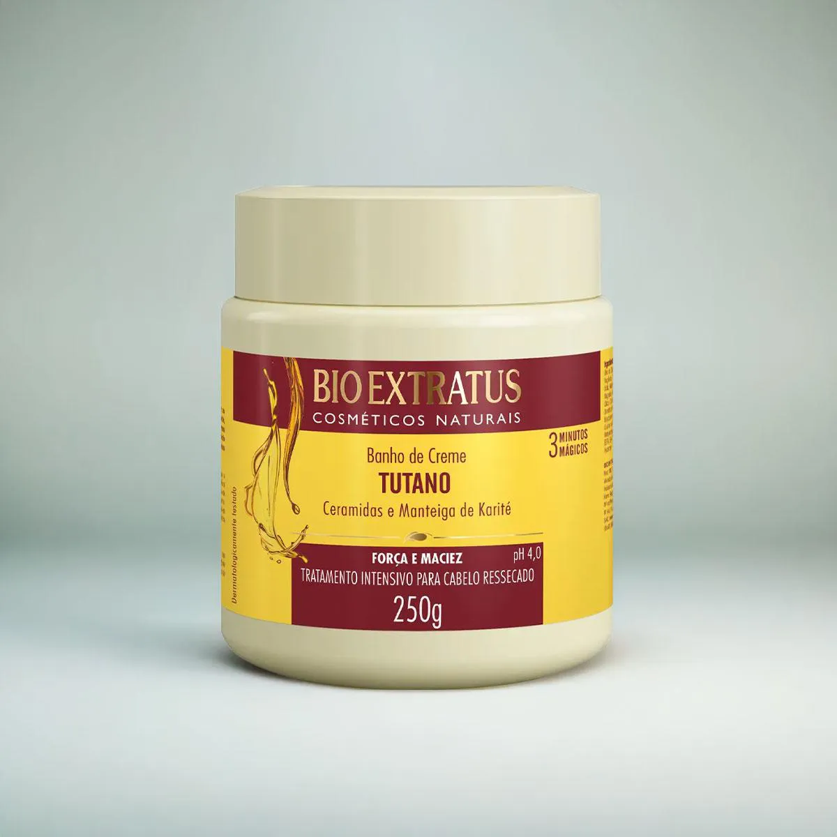 Este Kit Contém Bio Extratus Tutano - banho de Creme 250ml: hidrata intensamente, nutre da raiz às pontas e fortalece a fibra capilar, reduzindo pontas duplas e devolvendo a maciez. Garante fios intensamente brilhantes, fortes e cheios de vida em minutos. Bio Extratus Tutano Vitamina E Booster Nutritivo - Óleo Capilar 40ml: um poderoso elixir para fios sedosos e livres de frizz. Sela, restaura e protege os fios desde o primeiro uso, conferindo brilho intenso e toque de seda.Conselho de Aplicação
