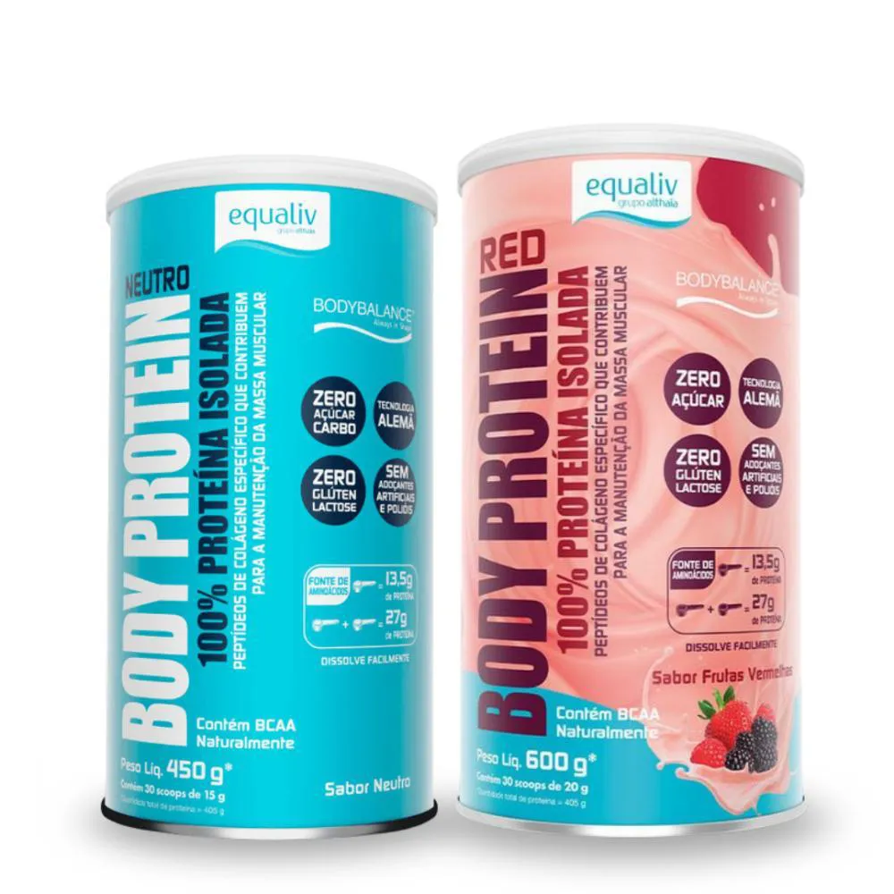 Kit Body Protein Isolado Frutas Vermelhas 600G + Neutro 450G Equaliv