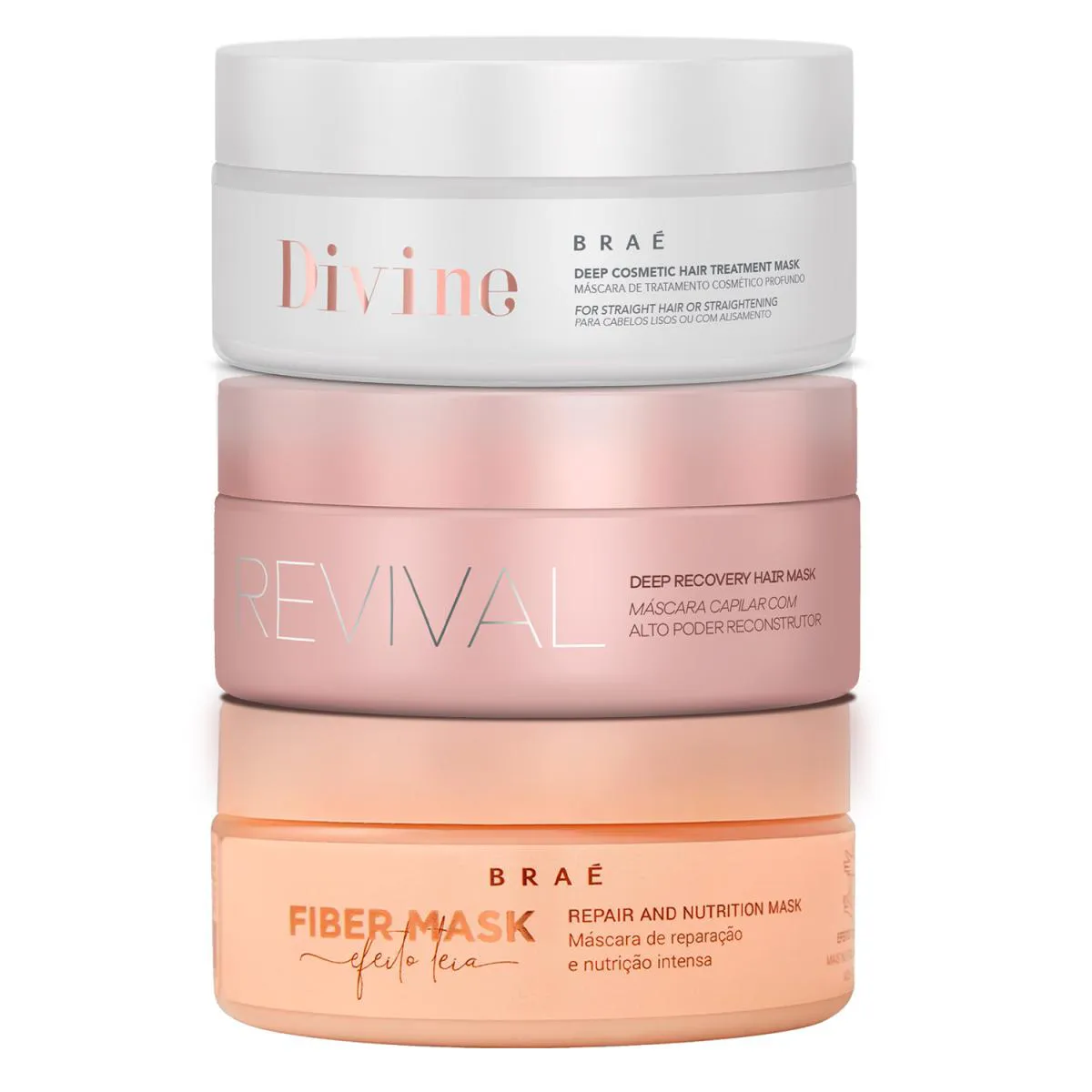 Kit Braé Cronograma Capilar 200g Máscara Divine + Revival + Fiber Mask