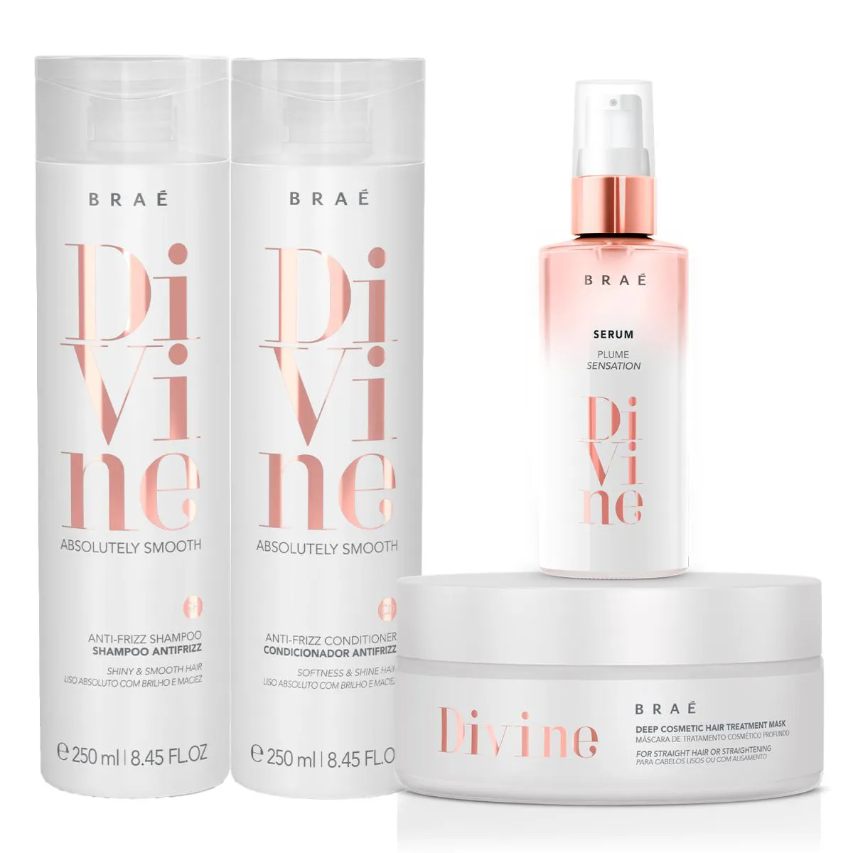Kit Braé Divine Shampoo 250ml + Condicionador 250ml + Máscara 200g + Sérum Plume Sensation 60ml