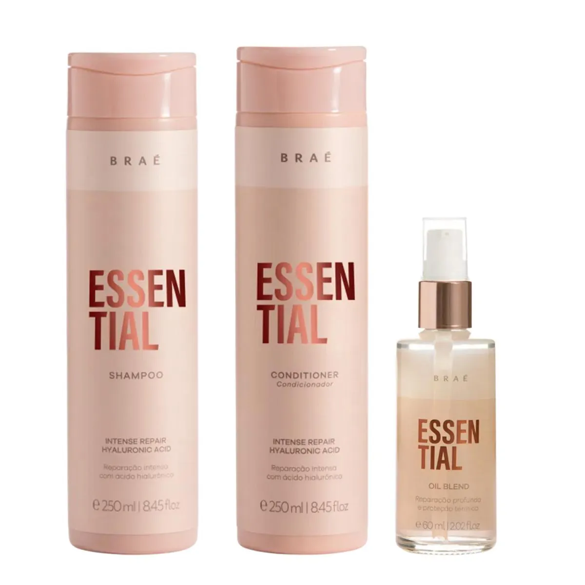 Kit Braé Essential Shampoo 250ml + Condicionador 250ml + Sérum Oil Blend 60ml