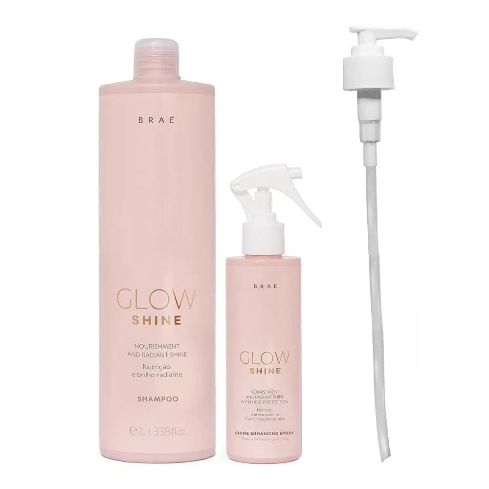 Kit Braé Glow Shine Shampoo 1 Litro + Ativador de Brilho 200ml + Válvula Pump
