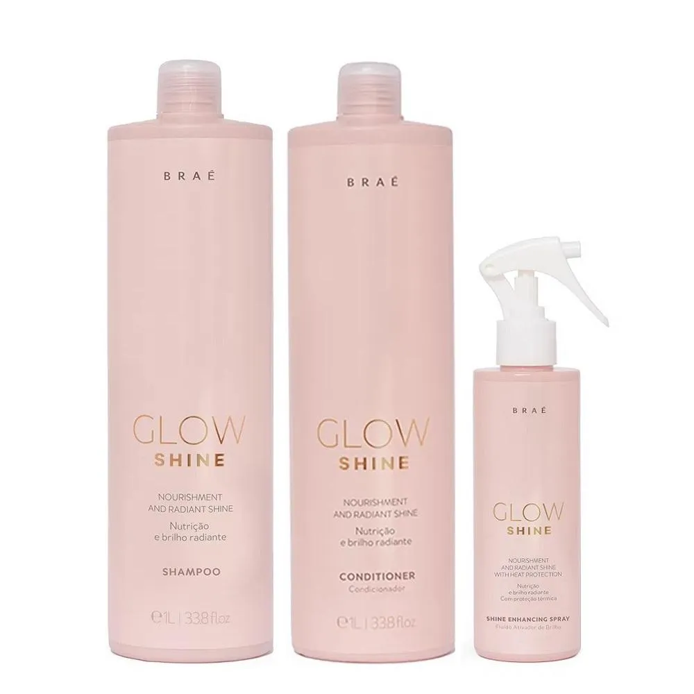 Kit Braé Glow Shine Shampoo 1 Litro + Condicionador 1 Litro + Ativador de Brilho 200ml