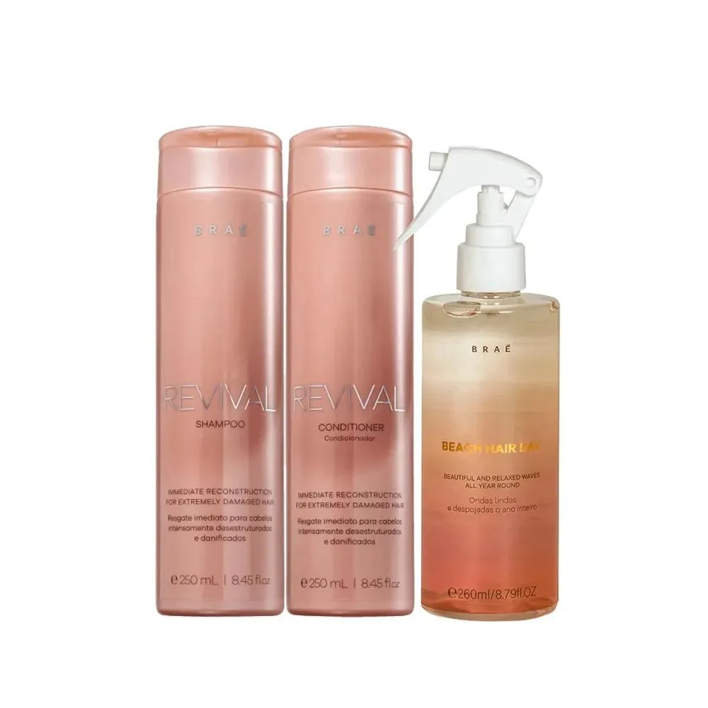 Kit Braé Revival - Shampoo 250ml + Condicionador 250ml + Beach Hair Day 260ml