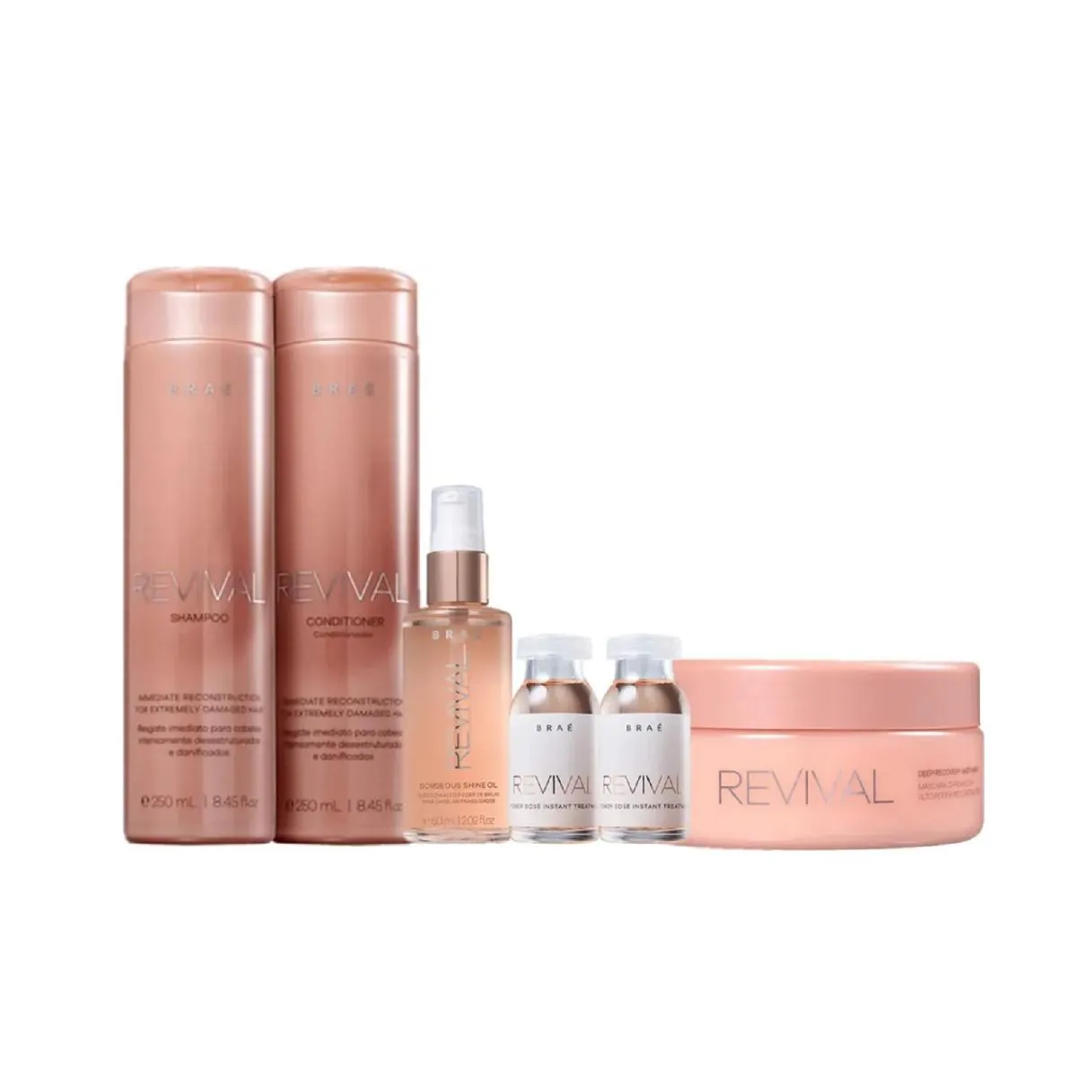 Kit Braé Revival - Shampoo 250ml + Condicionador 250ml + Máscara 200g + Óleo 60ml + Ampola 13ml (2unidades)