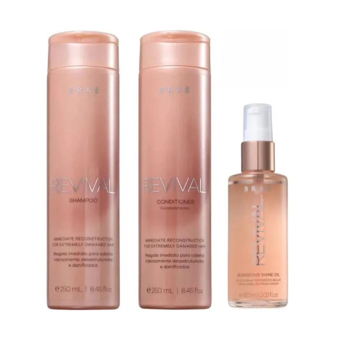 Kit Braé Revival - Shampoo 250ml + Condicionador 250ml + Óleo Gorgeous Shine 60ml