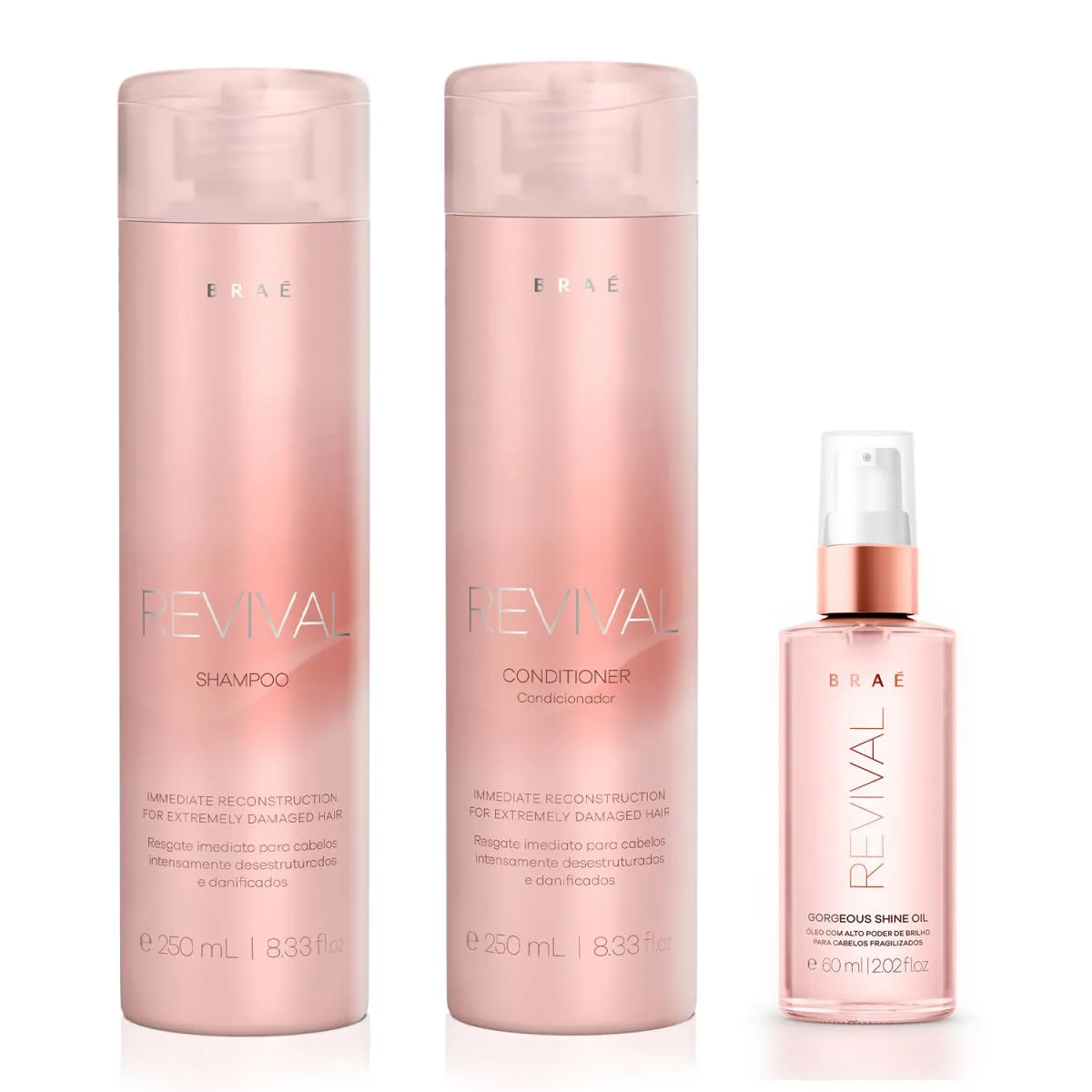 Kit Braé Revival Shampoo 250ml + Condicionador 250ml + Sérum Gorgeous Shine 60ml