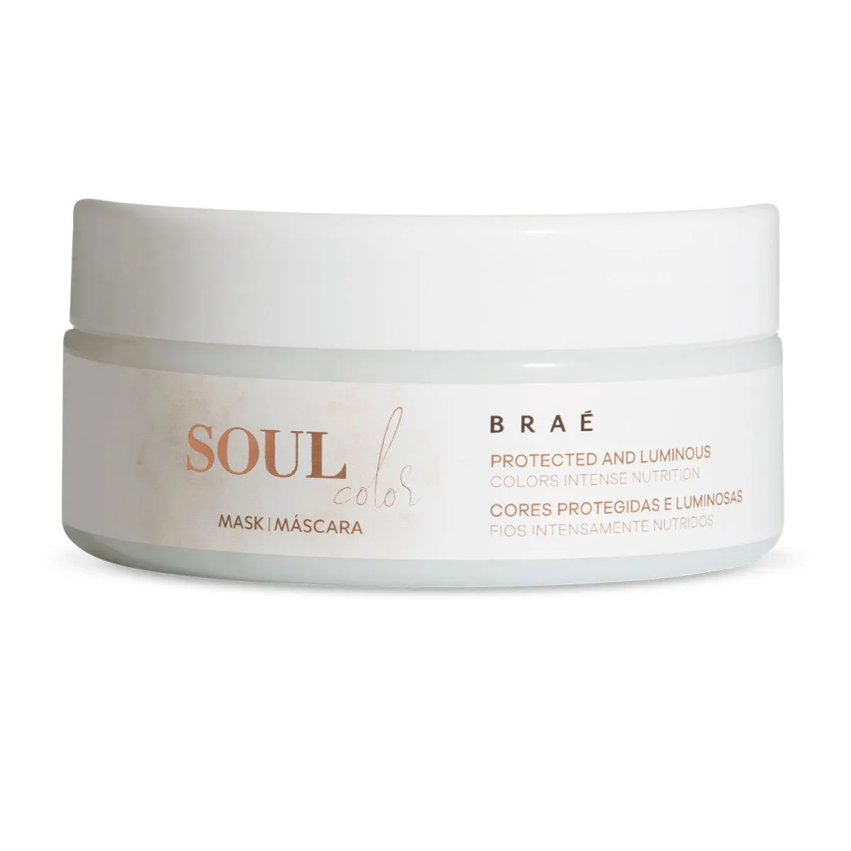 Braé Soul Color - Máscara Capilar 200g: hidrata e nutre os cabelos, sela as cutículas evitando que os fios percam os pigmentos depositados no interior da fibra proporcionando maior durabilidade da cor. Possui fórmula com exclusiva tecnologia, que reúne o poder da vitamina e, Óleo de semente de Uva, Proteína do Arroz, Blend de Aminoácidos e Pantenol, para a entrega de um cabelo fortalecido a cada aplicação.