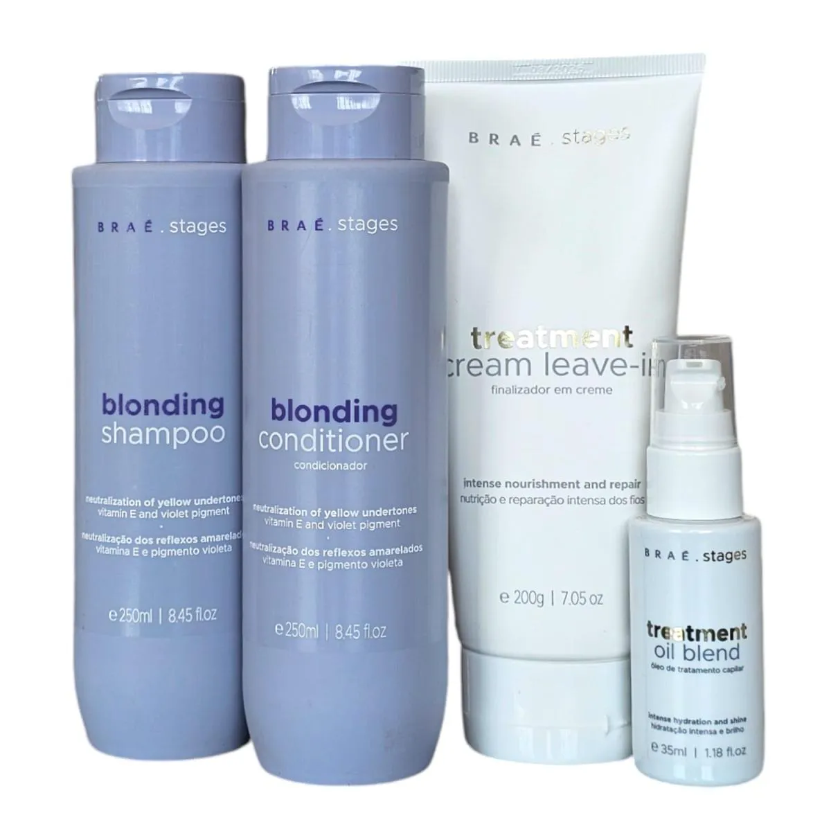 KIT BRAé STAGES BLONDING - SHAMPOO 250ML + CONDICIONADOR 250ML + CREME LEAVE-IN 200G + OIL BLEND 35ML