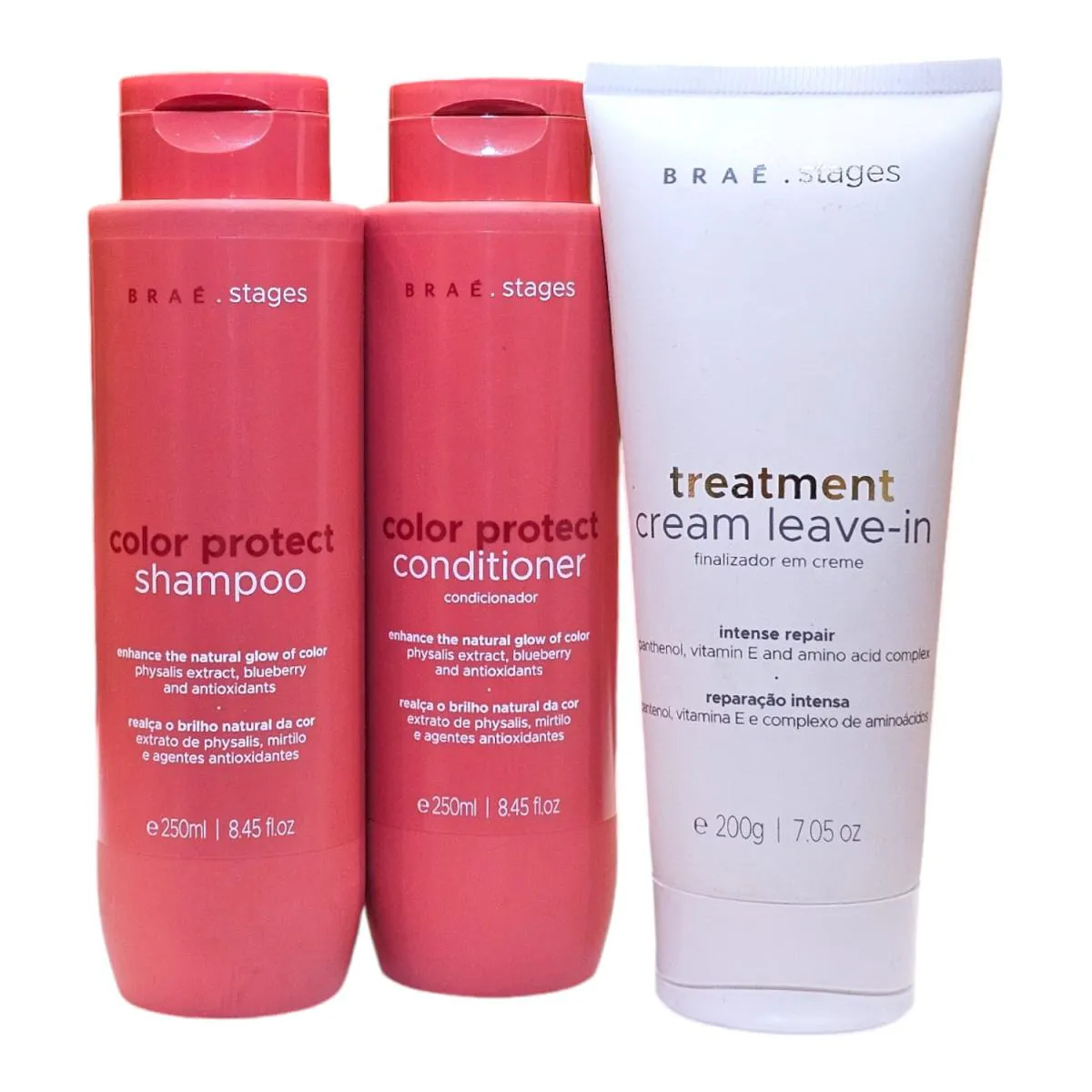 KIT BRAé STAGES COLOR PROTECT - SHAMPOO 250ML + CONDICIONADOR 250ML + TREATMENT CREAM LEAVE-IN 200ML