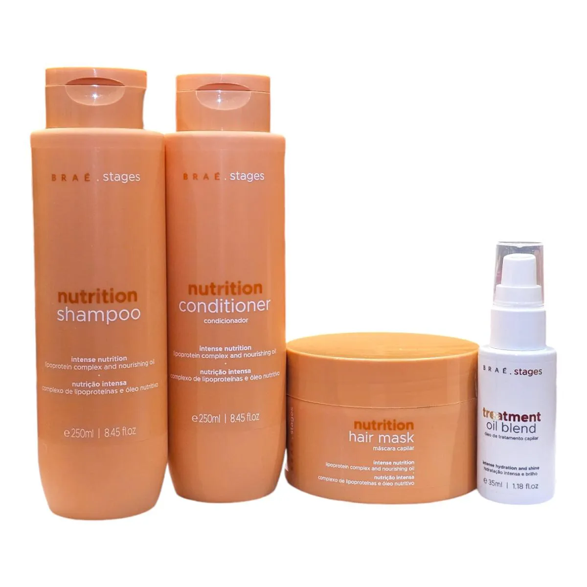 KIT BRAé STAGES NUTRITION - SHAMPOO 250ML + CONDICIONADOR 250ML + MáSCARA 200G + TREATMENT OIL BLEND 35ML