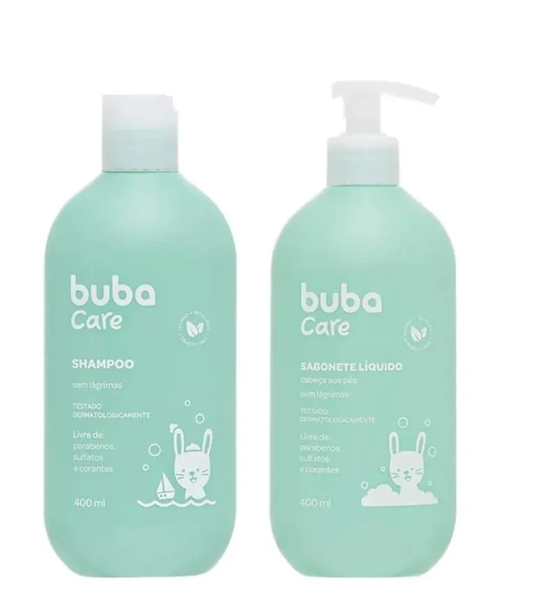 Kit Buba Care Vegano sem Lágrimas Shampoo + Sabonete Líquido 400Ml