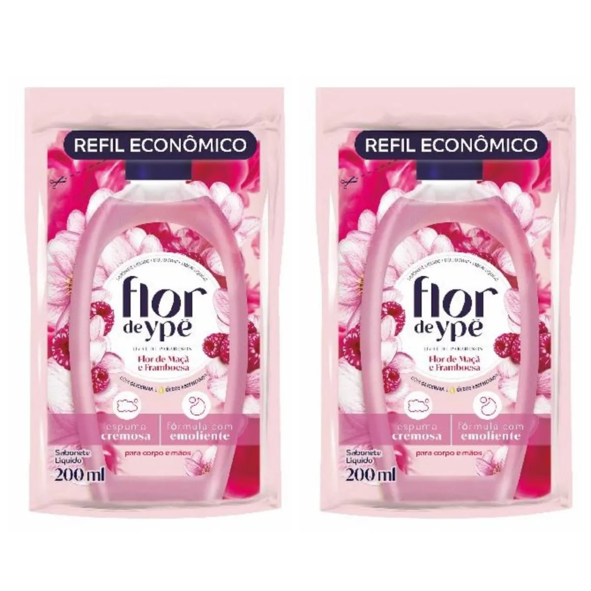 Kit c/2 sabonetes Líquido Flor De Ype Refil 200ml Flor Macã /Framboesa.