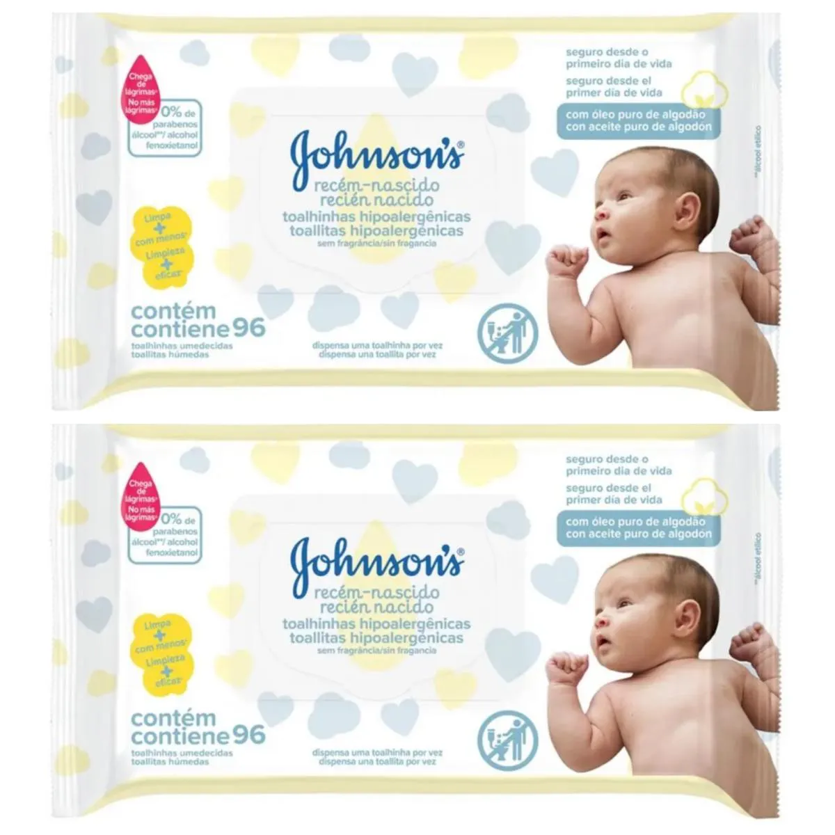 Kit c/2 Unidades de lenços umedecidos Johnsons Baby Recém Nascido 96 Unidades.