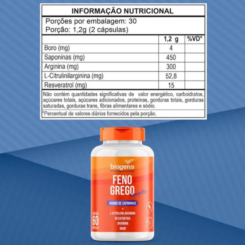 O Feno Grego Complex encapsula a verdadeira essência da natureza. Mais do que um simples suplemento, ele representa uma fusão harmoniosa de ingredientes meticulosamente selecionados, todos voltados para proporcionar uma experiência. O extrato de semente de feno grego, tradicionalmente valorizado em diversas culturas ao longo dos séculos por suas propriedades benéficas, concentra os inúmeros benefícios desta planta ancestral. Juntamente com a L-arginina, um aminoácido essencial. A alga Chondrus Crispus Invernal não é apenas uma rica fonte de nutrientes, mas também é enriquecida com L-Citrulinilarginina (citrulina), um composto que atua em sinergia com a L-arginina. O Trans-resveratrol, um polifenol presente em diversas plantas e renomado por suas propriedades, acrescenta outra dimensão ao produto.