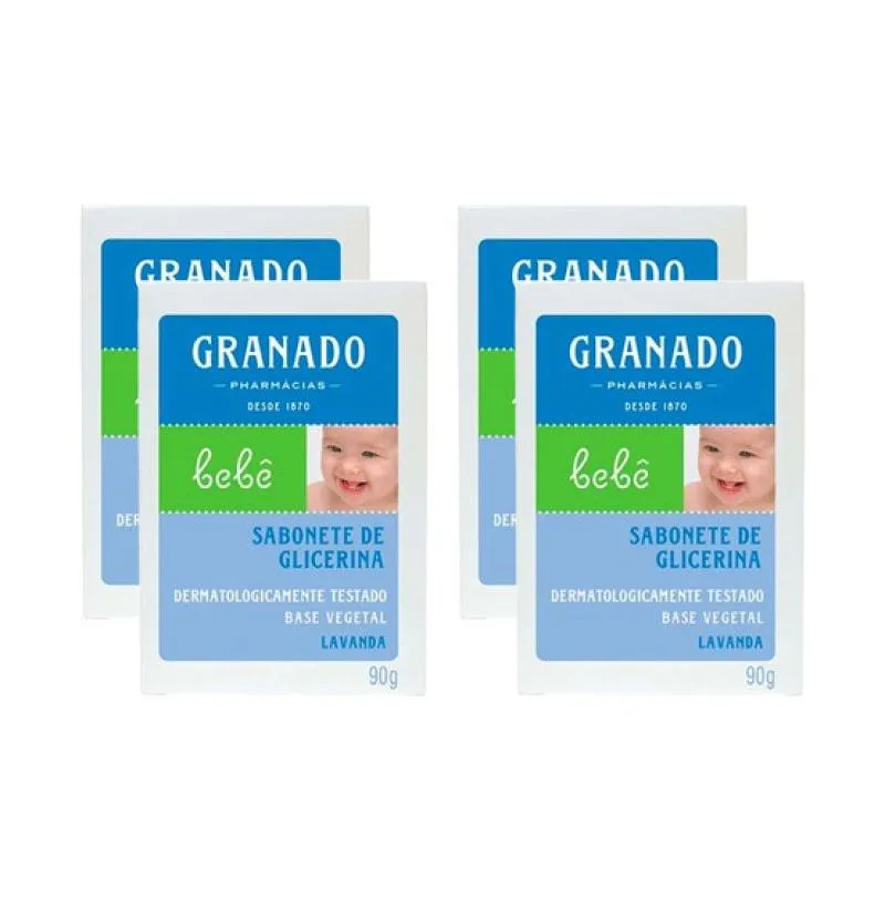 Kit c/4 sabonetes infantil Granado Bebê 90g Lavanda.