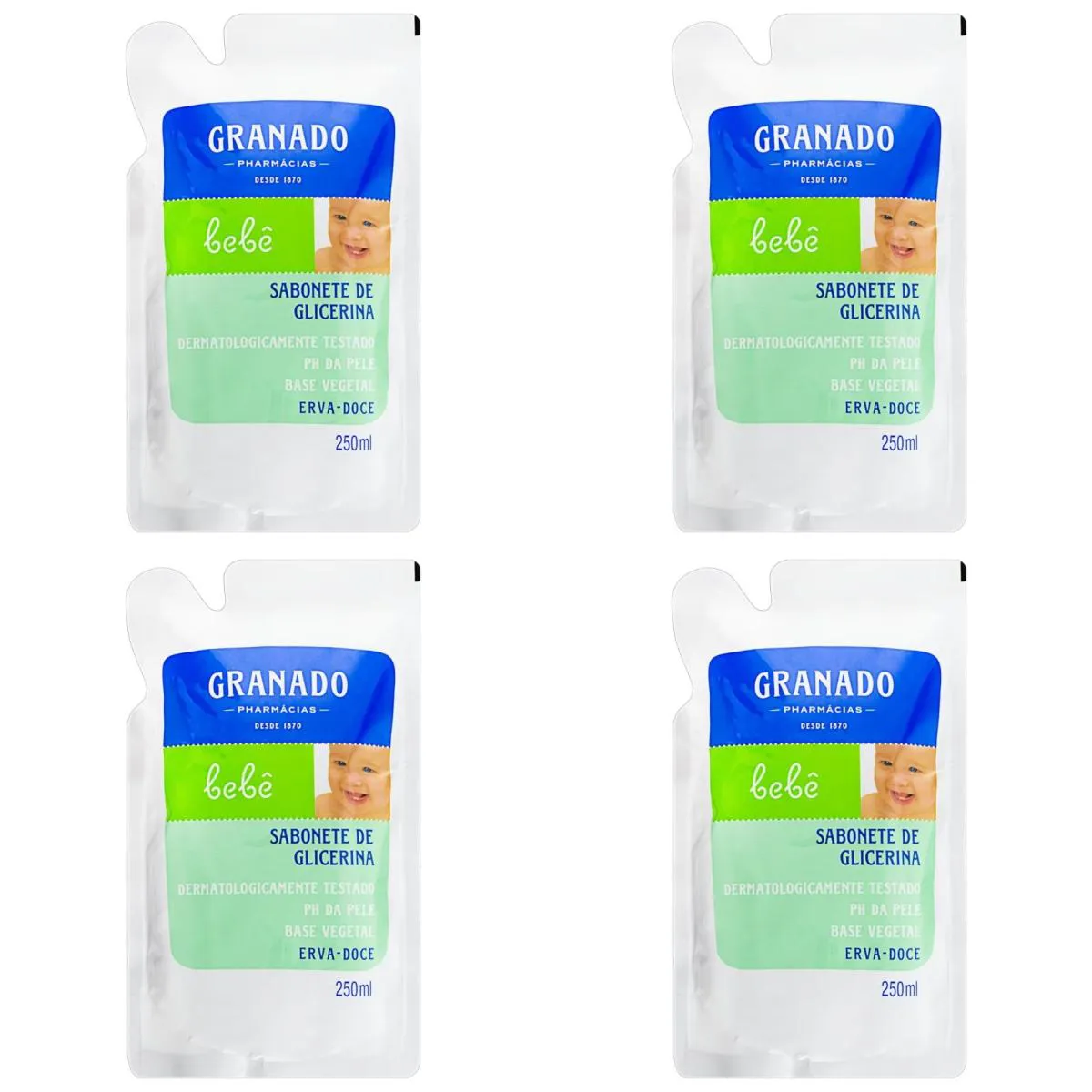 Kit c/4 sabonetes Líquido infantil Granado Bebê Refil 250ml Erva Doce.